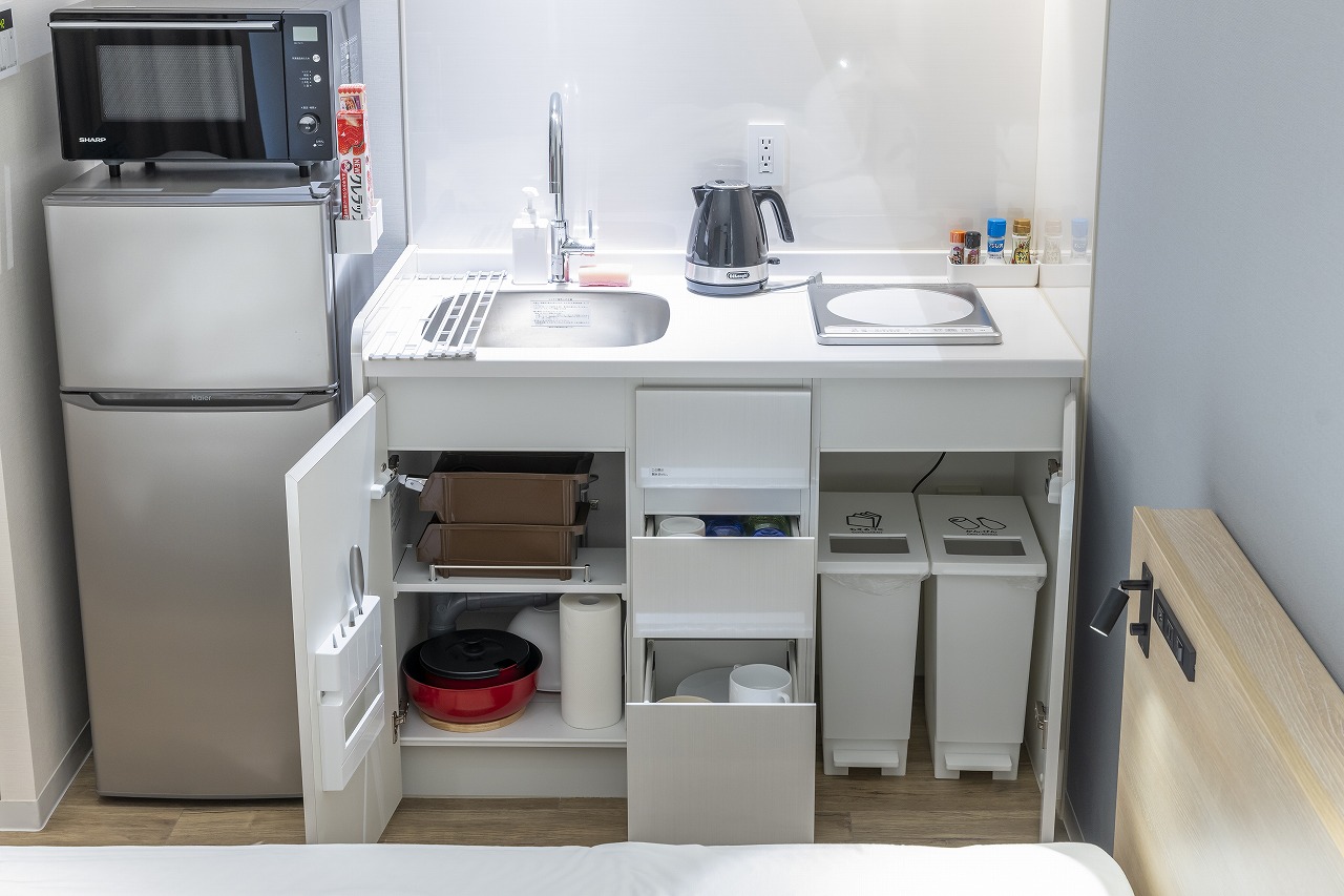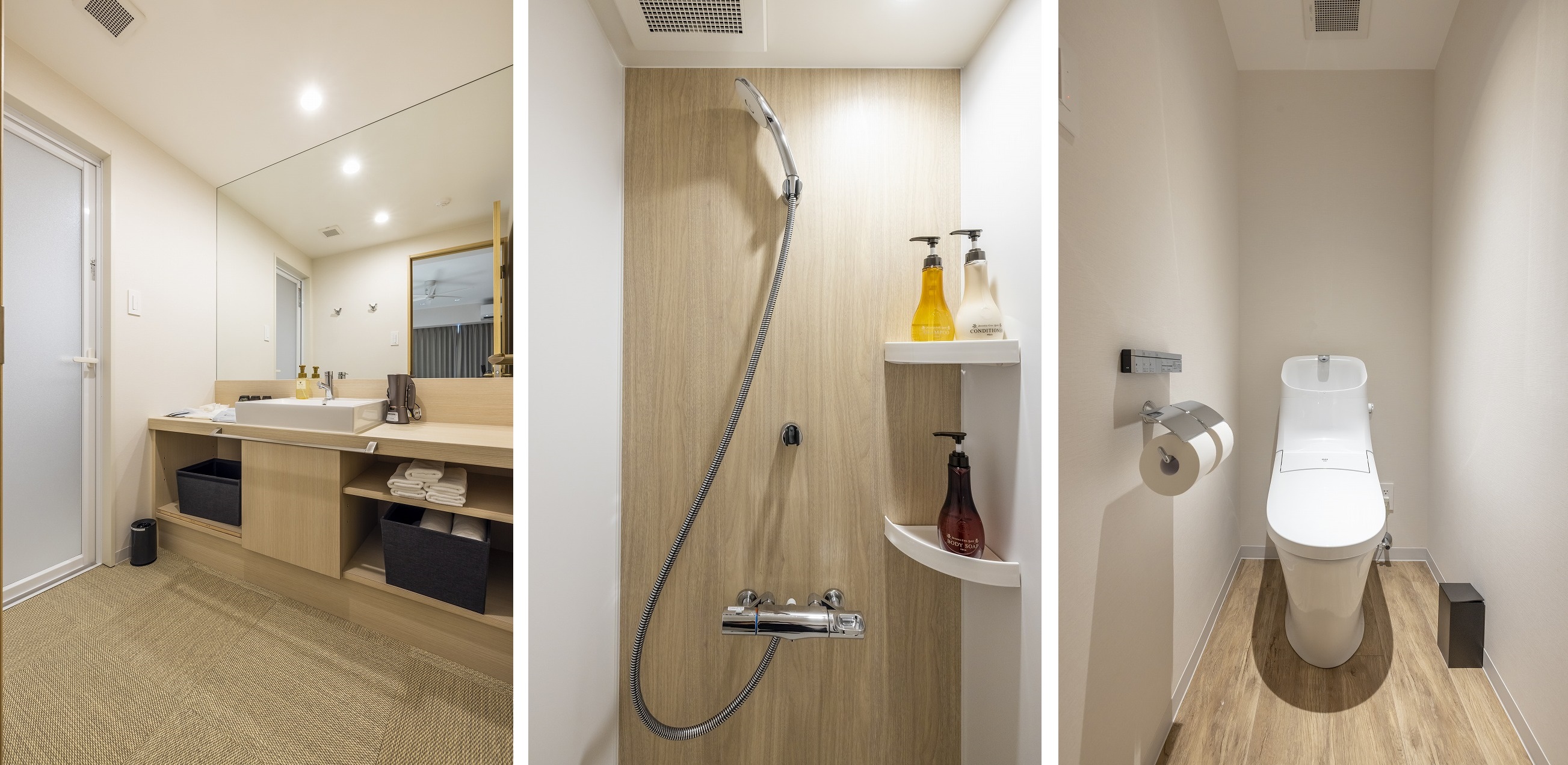 ALPHABED INN共有3種房型,全15間客房,每間約34~40平方公尺,另外,人愈多省愈多,一間客房最多可以住到7人,不管是大家族旅行、朋友畢業旅行、閨密兄弟散心旅遊,都可以投宿這間旅館。由於客房全採乾溼分離、附迷你廚房,也很適合Long Stay。