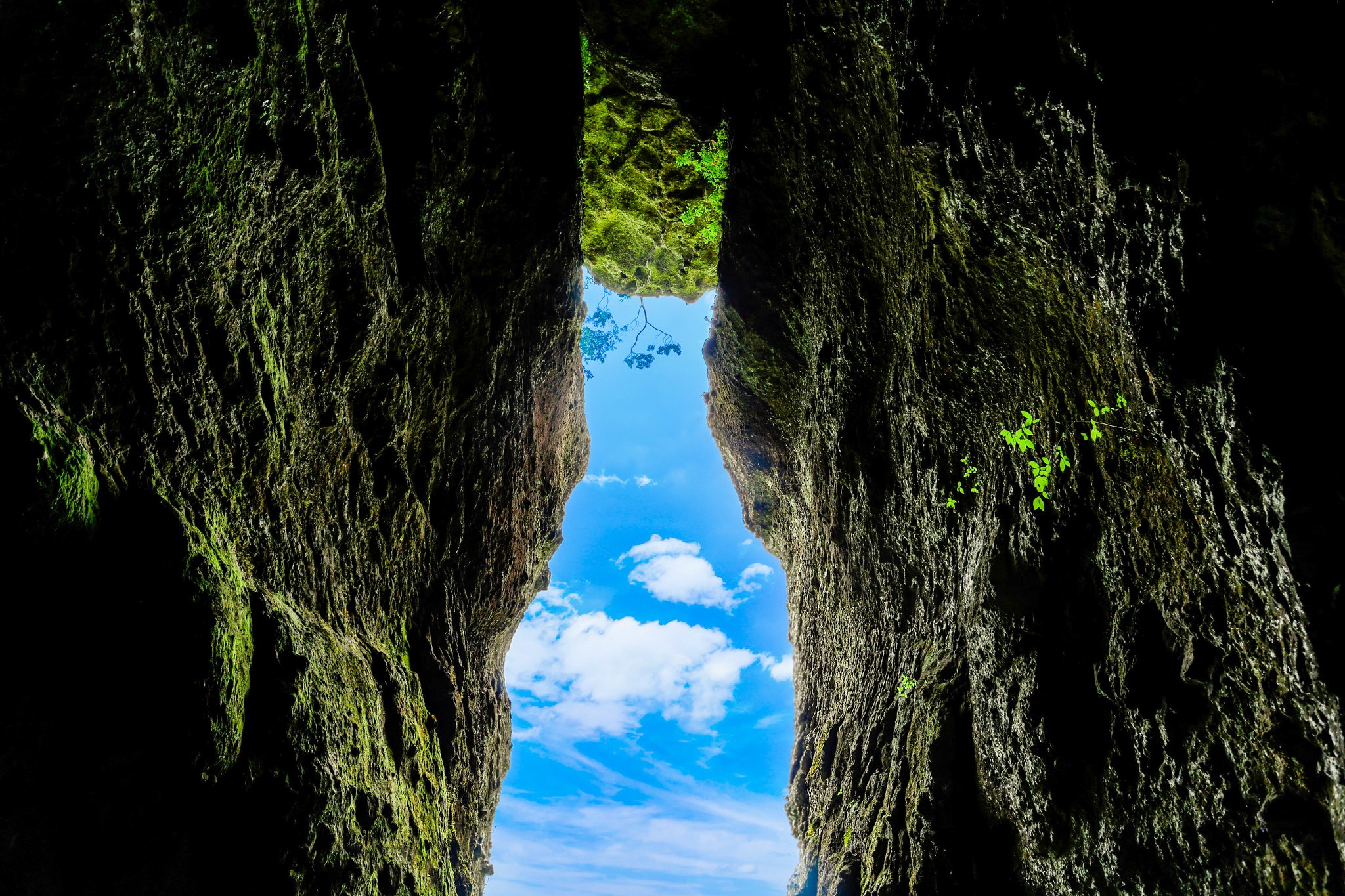 ▲熊本縣南阿蘇村的地景奇蹟「免之石」,巨大岩石竟然被卡在岩縫之中令人讚嘆大自然的奧妙。