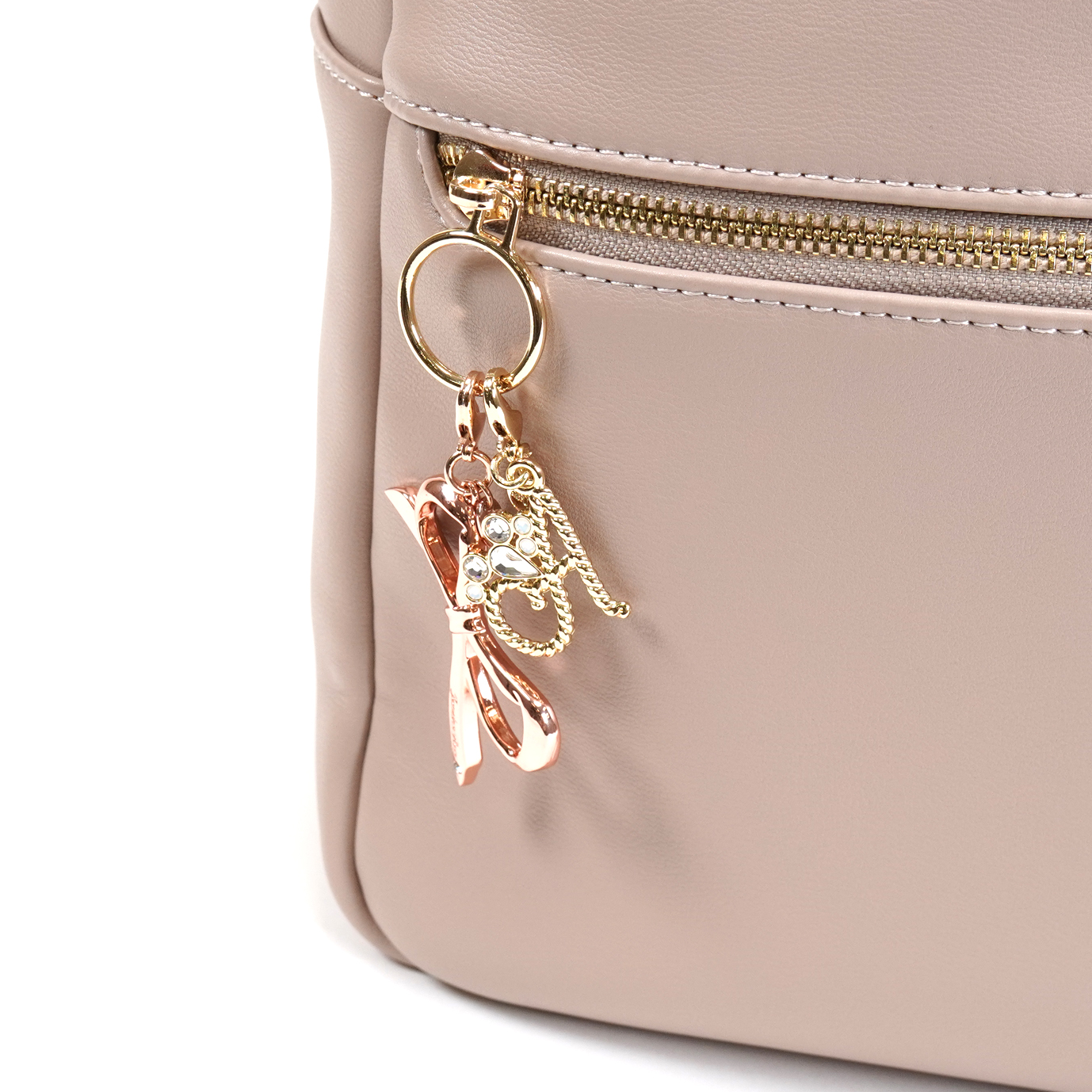 前口袋的拉鍊吊飾為可拆式,可以自由換上鑰匙圈等裝飾小物。