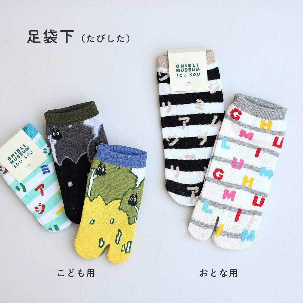 將傳統工藝與時尚、字母互相結合,正是SOU・SOU產品的最大特色,原本為了搭配木屐而誕生的古典分趾襪,上面出現了小黑炭、躲藏在森林中的龍貓以及吉卜力美術館的英文與片假名字母,童趣程度立刻翻倍,而且成人或幼兒的尺寸皆有,家中有小朋友的家長們,不妨直接一次全包,來個可愛的親子襪look吧!