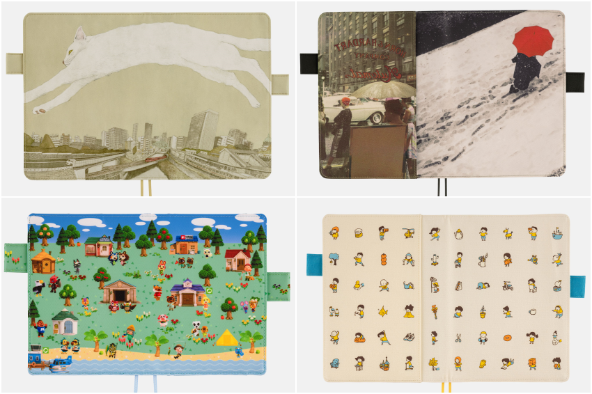 日本手帳界的龍頭「ほぼ日手帳」今年與多位知名創作者、遊戲聯名,像是知名繪本作家吉竹伸介熟悉的插圖搖身一變成為了可愛的手帳,同時推出貼紙與印章等周邊文具!最夯遊戲「集合吧!動物森友會」聯名款則以遊戲中的彩色花草和可愛動物角色為手帳注入滿滿活力;美國知名攝影師Saul Leiter的聯名款一推出就受到粉絲矚目,封面印上其1950年代拍攝的經典作品,油畫般的照片記錄了日常偶然的瞬間,紅色大傘映照在白色雪地顯得詩意,也為手帳增添魅力;人氣插畫家松本大洋將「飛越神田」這幅作品做為手帳封面,以一隻巨貓橫跨封面及封底,搭配溫暖色調,醞釀出樸實氛圍。