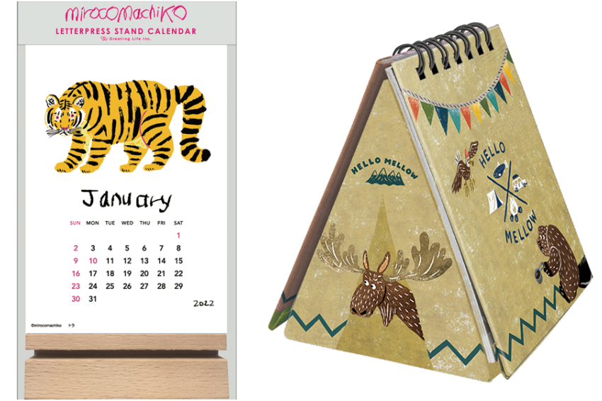 誠品獨家引進療癒系文具品牌Greeting Life,以活板印刷表現出老虎、狐狸等動物栩栩如生的模樣,附上木製架更可當成畫作欣賞,是相當具有文青風格的一款直立型年曆。此外,Greeting Life也與人氣插畫家OKATAOKA聯名,搭上戶外活動熱潮,讓動物們也在大自然中享受露營,可愛療癒的圖案也製成桌曆與掛曆,尤其可以做成帳篷形狀的桌曆更顯趣味。