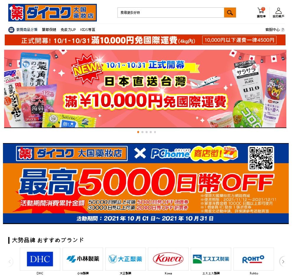 2021年10月起台灣線上商店開跑,藥妝全部日本直送台灣!
