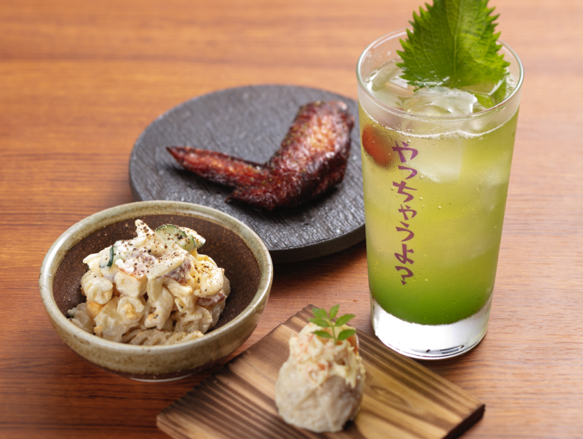 燒賣搭配通心粉沙拉和日式烤雞翅,飲料可以選擇檸檬沙瓦或紫蘇莫吉托。價格全部只要1,000日幣。