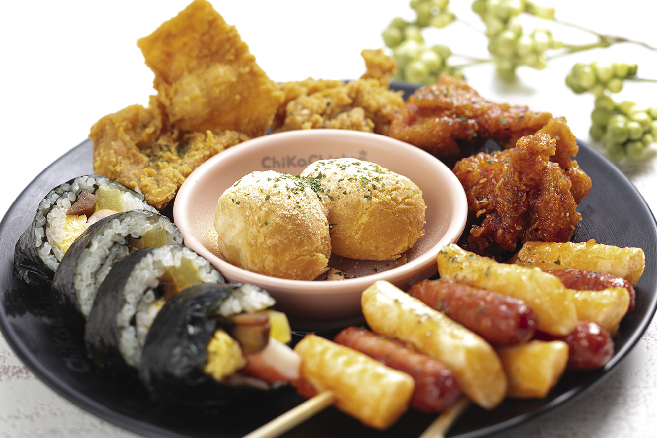 套餐包含炸雞、韓式藥念炸雞、起司雞和海苔飯捲,CP值超高。價格1,500日幣,含稅。