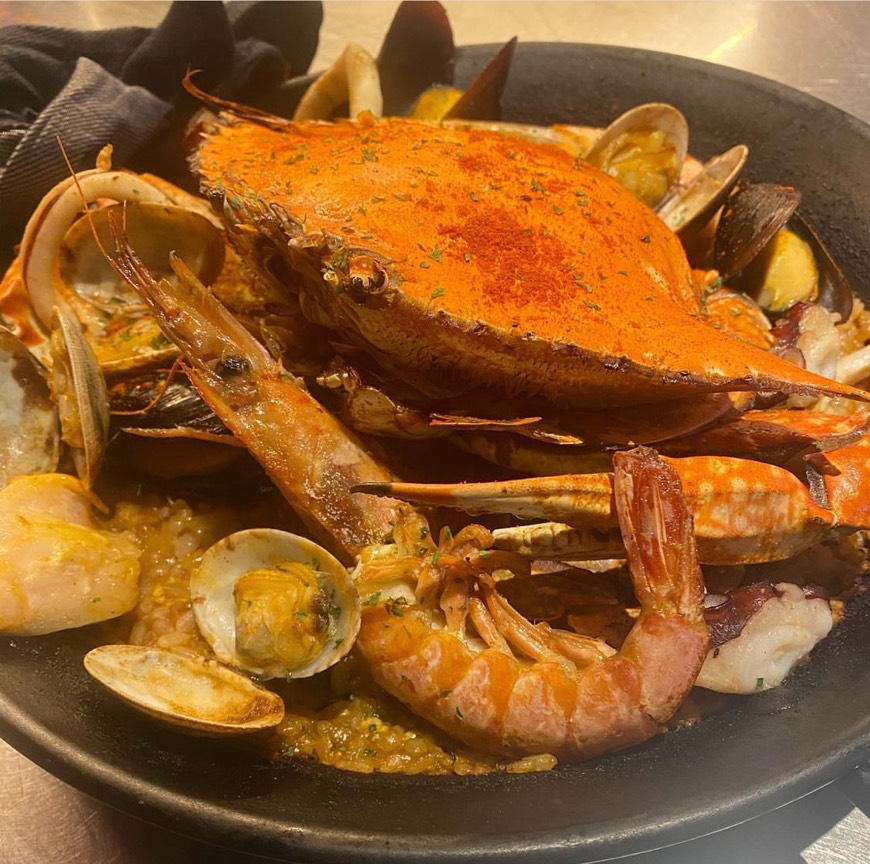 番茄西班牙海鮮飯是該店的招牌料理,米飯中完美地濃縮了魚的鮮美。價格2,178日幣,含稅。