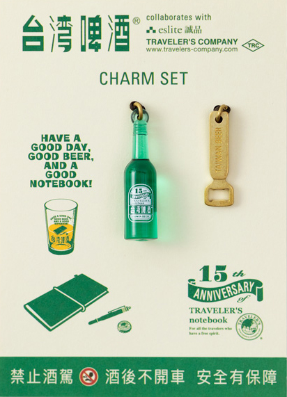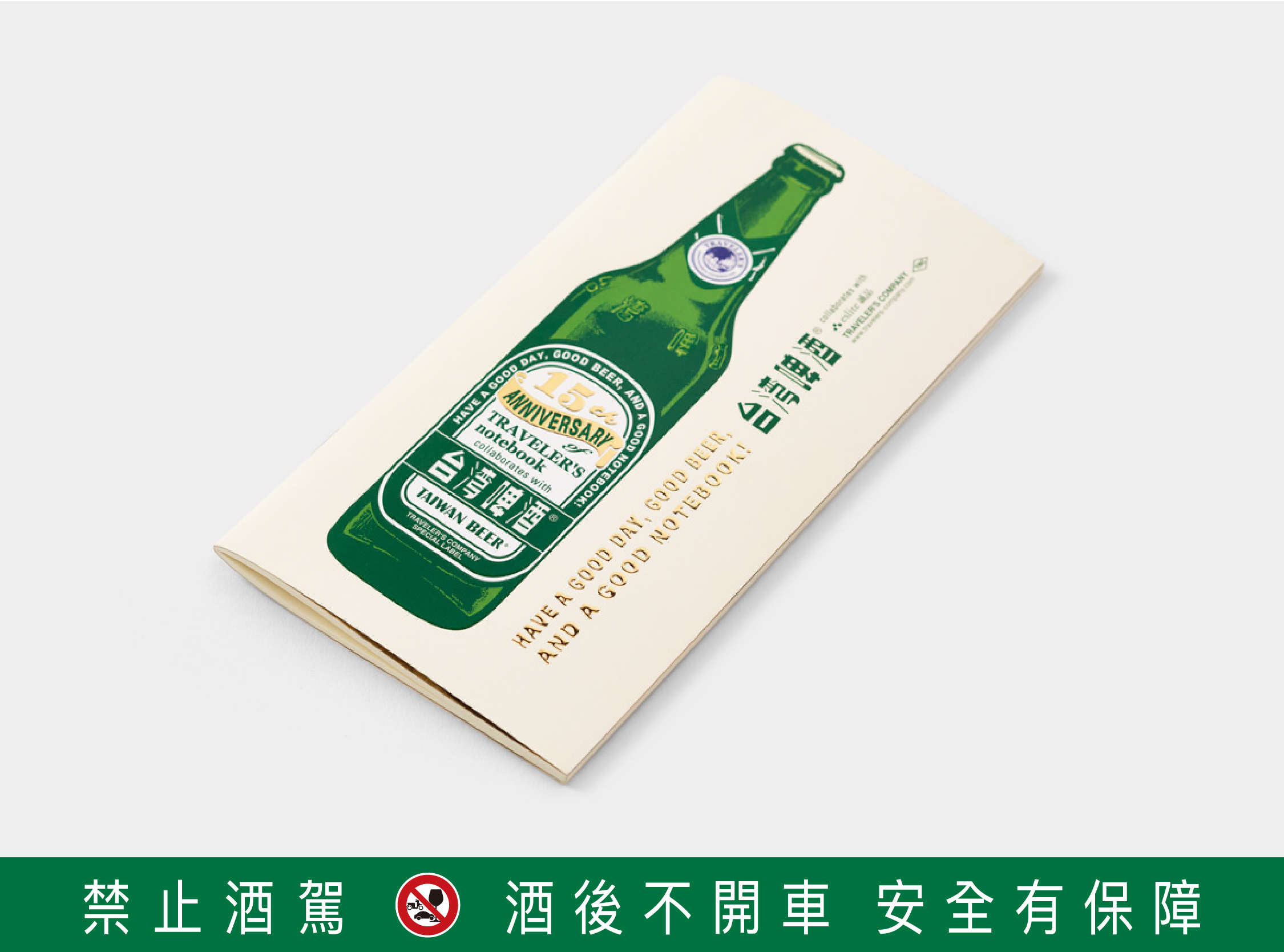 封面有著台灣啤酒瓶圖案設計,以此紀念TRAVELER'S notebook 15週年!圖樣局部上光,呈現酒瓶實際的光澤。