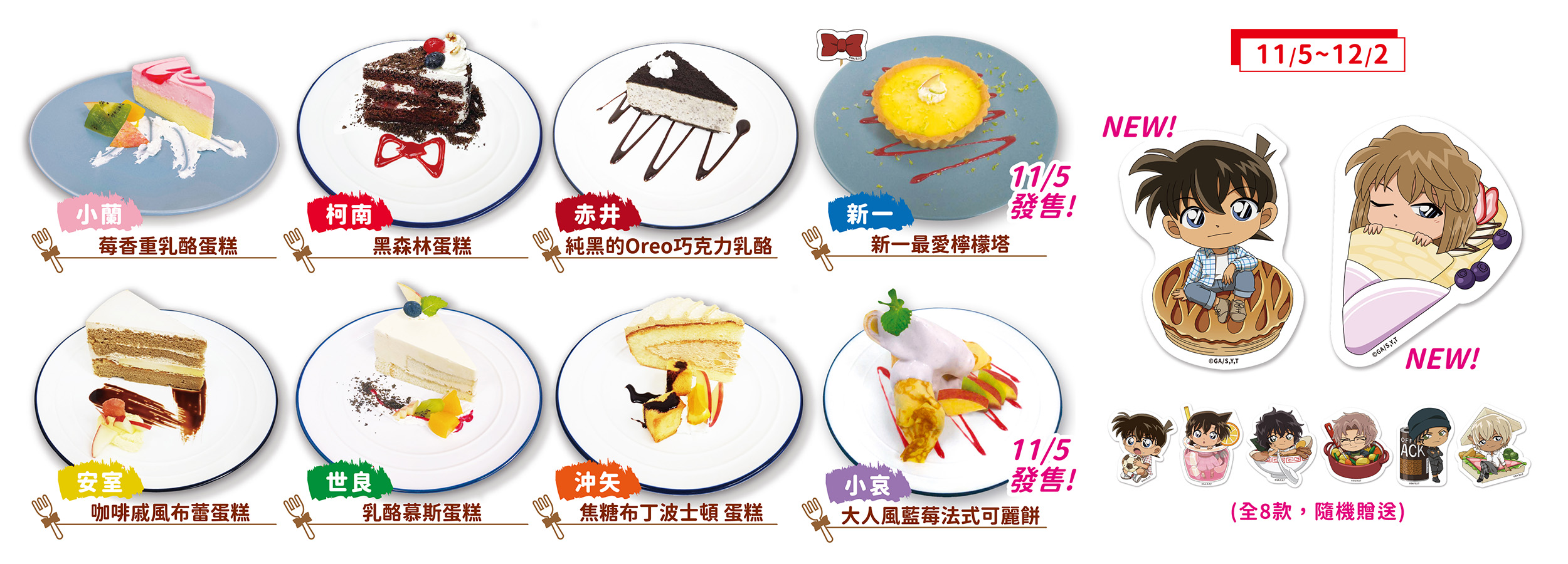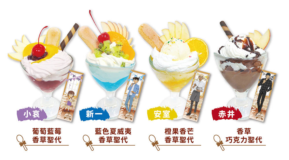 本次《名偵探柯南》主題Café以健康為出發點,供應全系列蛋奶素健康新蔬食料理,粉絲熟悉的角色將會於主餐、甜點、聖代、飲品中現身,並搭配《名偵探柯南》主題Café全新繪製設計的特典。較值得注意的是,今年餐墊、餐飲特典特別以兩階段方式來贈送,像是「杯墊」第一階段為13款Q版鄉村風,並於11/15第二階段起追加8款化身成角色代表食物的新設計,兩階段杯墊均採PP塑膠材質特製,讓粉絲們收藏保存更能長久!不管是入內用餐或是外帶餐飲都可獲得,保證讓柯南粉絲拿在手裡、甜在心裡。