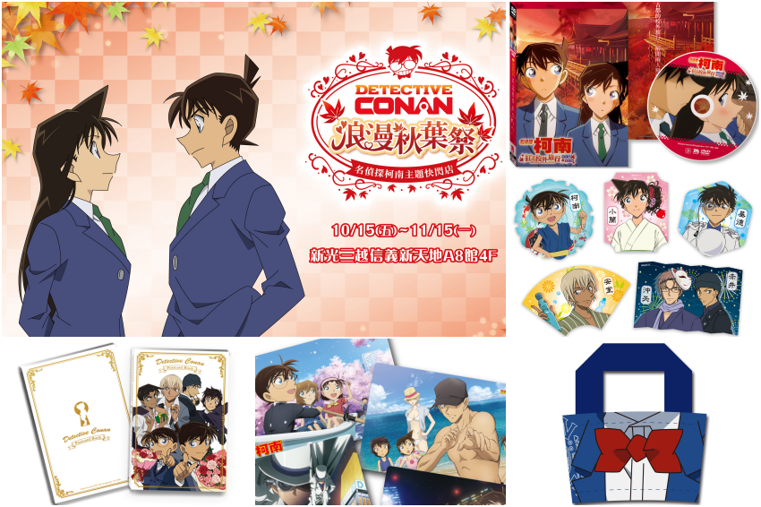 經典不敗的日本推理動漫《名偵探柯南》,近來在台灣動作頻頻,除了在10/15即將開幕的田園鄉村風《名偵探柯南》主題Café於三創園區登場 ,在同一天也有快閃店《名偵探柯南 浪漫秋葉祭》要進駐新光三越信義新天地A8!這次以秋天戀愛為主題,從入口處燈箱到店內拍照牆,隨處可見被滿滿楓紅包圍的新一及小蘭,讓大家一到現場就可以感受到秋楓的浪漫氛圍,場內還有超過上千款限量柯南周邊精品,柯南迷想挖寶好周邊務必走一遭!
