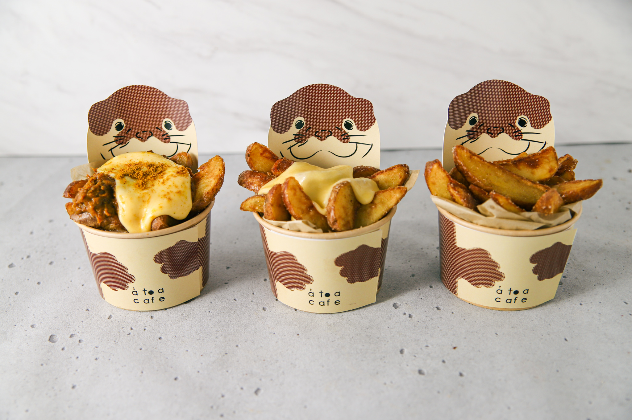 水獺造型薯條看起來就像超萌水獺捧著一大堆薯條,還原了水獺把小石頭捧在胸前的習性,光看就要融化了,絕對是網美照的定番商品!口味包含高湯、起司和淡路肉醬起司,價格分別為500、550、580日幣。