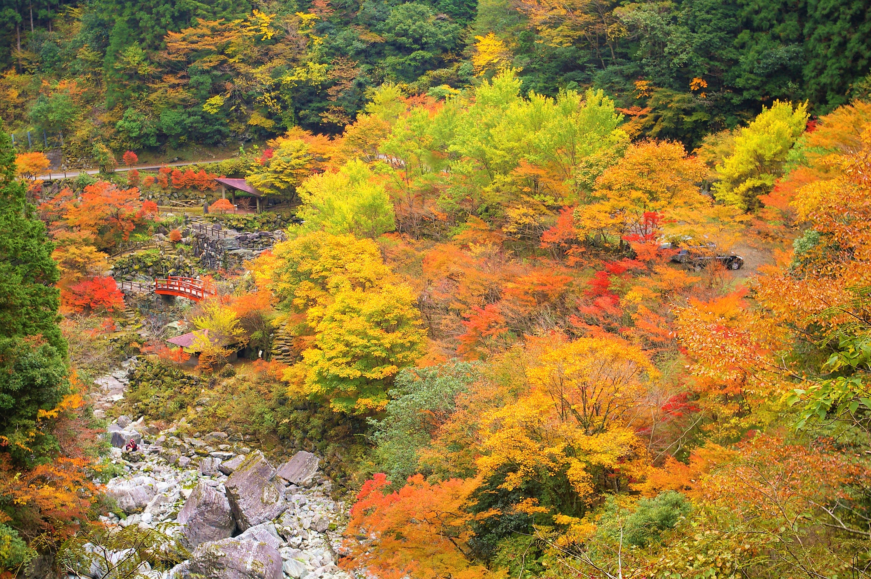 安居溪谷的險峻峽谷造就出多處有大有小的瀑布,泛綠色澤的巨石奇岩被青松及楓紅點綴,景致怡人,療癒人心。境內有「回眸瀑布」「飛龍瀑布」「昇龍瀑布」「水晶淵」「千仞峡」等多數可看點。每年秋季滿山楓紅,是高知縣內知名賞楓景點。