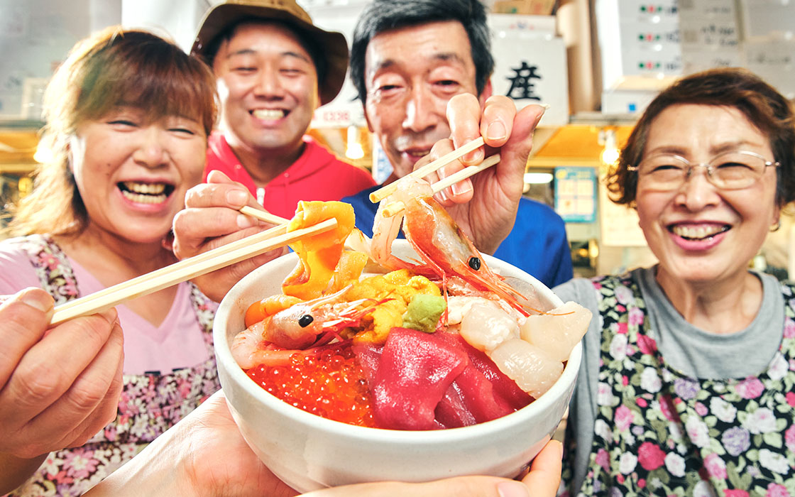 ▲圖片來源/星野リゾート「OMO 戰隊」服務帶領旅客暢遊朝市、隨機享用當日推薦生魚片