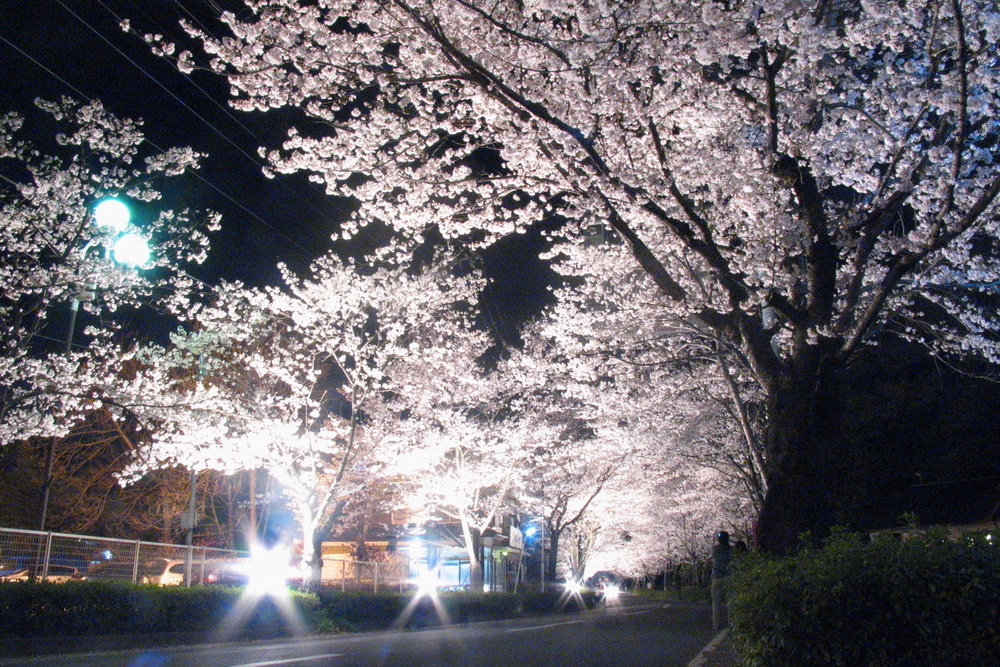 ▲春天的夜晚也能觀賞點燈的夜櫻。 ©長生館