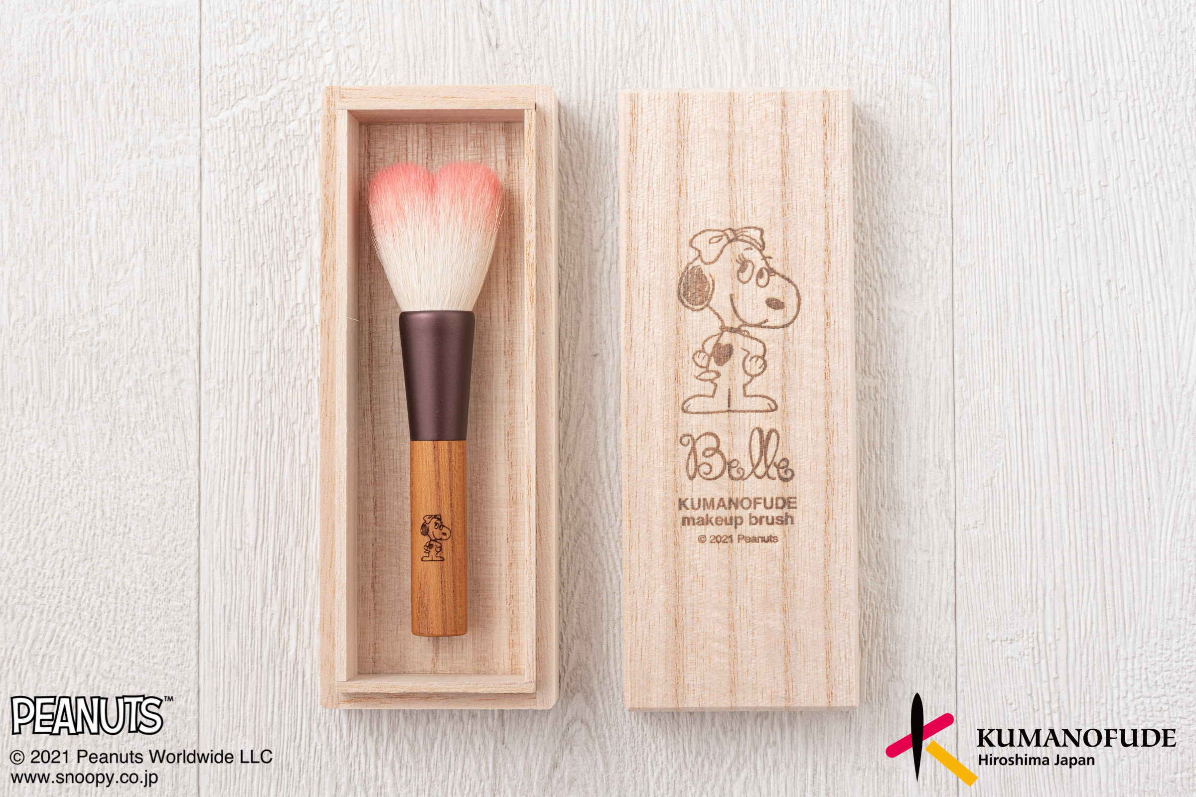 史努比的妹妹BELLE背上有心型的斑點,以此為概念,職人們打造出愛心形狀且為粉紅色的刷頭,不但小巧可愛也相當實用。刷柄的部份使用紋路美麗的櫸木,上面還繪有BELLE的圖案。