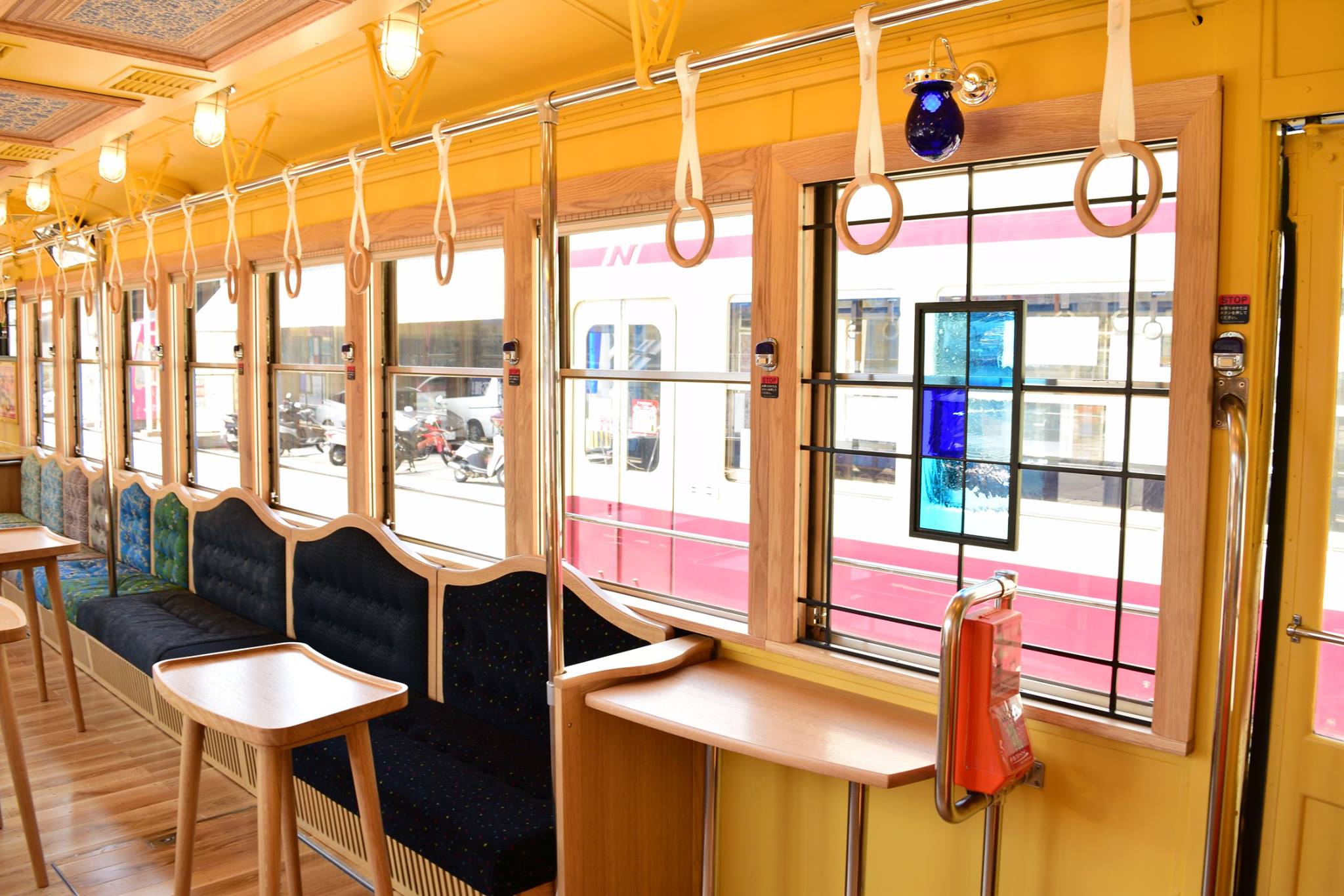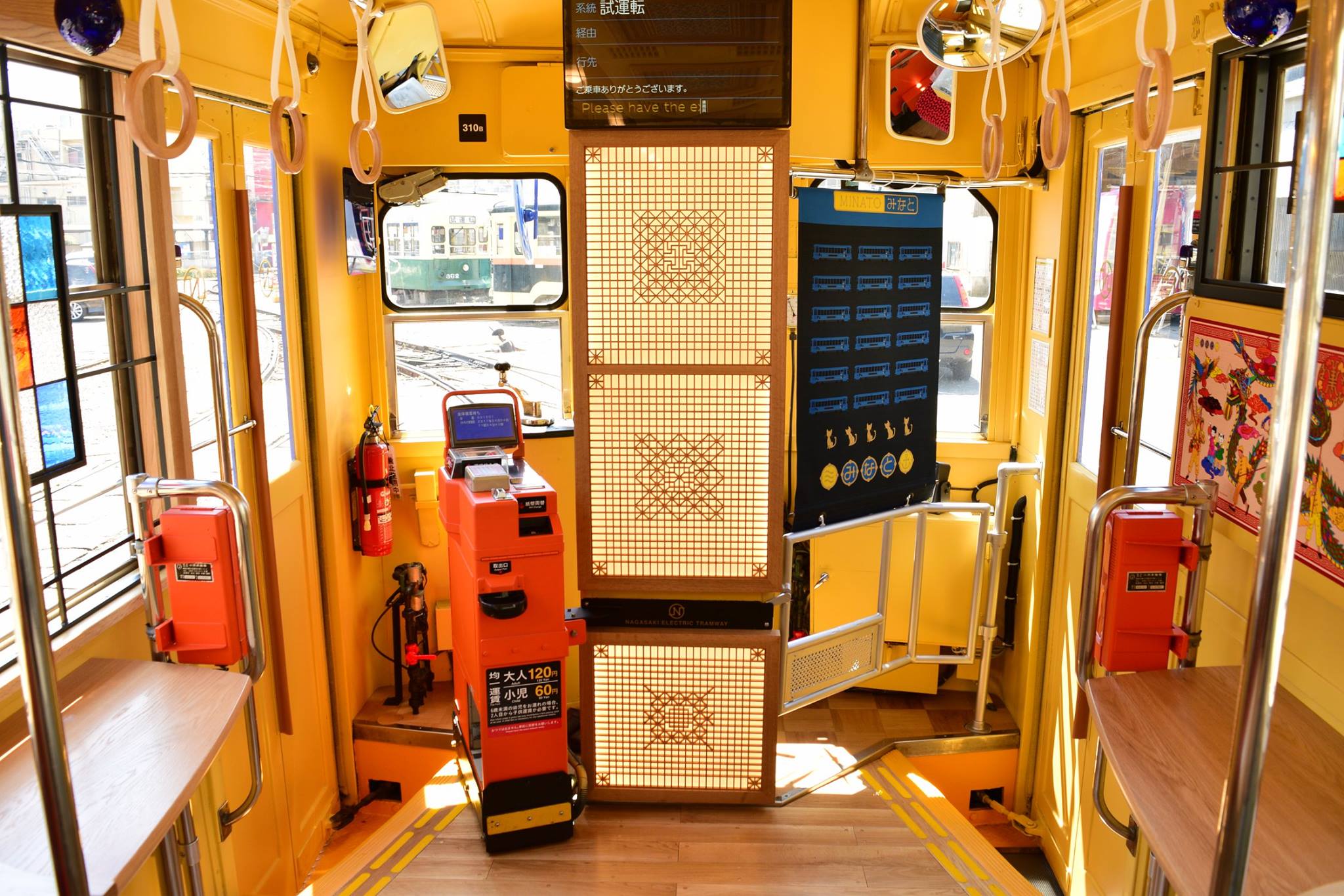 在長崎的路面電車中,推薦必搭的就是由九州奢華觀光列車「七星號」設計師水戶岡銳治所打造的「港(MINATO)」!外裝以象徵大海的靛藍色為基調,再加上長崎處處可見的麒麟尾貓圖樣,一些細節都十分的到位。車廂內部整體用木材打造出高質感,部分車窗則以教堂的彩繪玻璃呈現,加上充滿中華風情的圖騰裝飾,傳達長崎融合東西文化的特色。但不要以為「港(MINATO)」這麼高級,車票就會比較貴,它的車票價錢與一般路面電車的票價是一樣的唷!是不是一定要去搭搭看的呢~