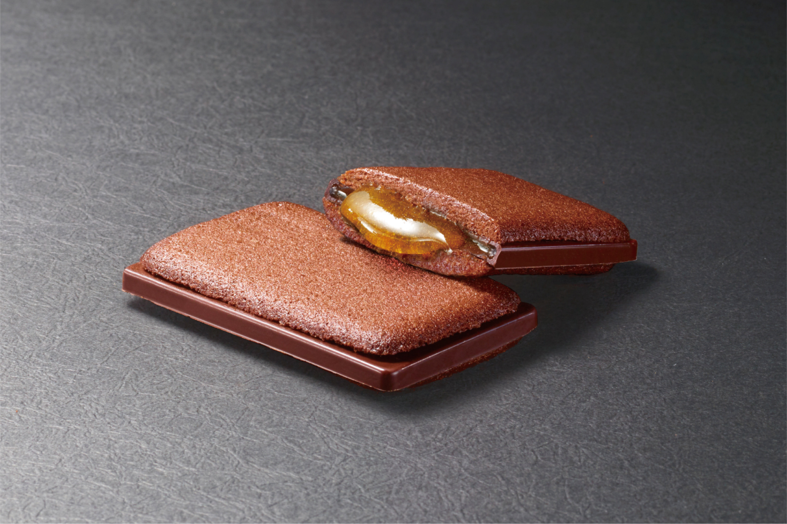 巧克力磚在加上柑橘和百香果醬汁以後,以高溫烘烤,最後夾在巧克力貓舌餅中,作為融心。咬下去就可以感受到高雅的香甜滋味在口中溢散開來。5入組800日幣、10入組1,600日幣、20入組3,200日幣。
