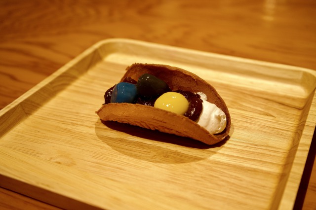 ▲煎餅也可以放入鮮奶油與彩色湯圓的捲餅夾心吃法,嚐鮮又不失創意。(圖片來源: ⒸMATSUZAKI SHOTEN)
