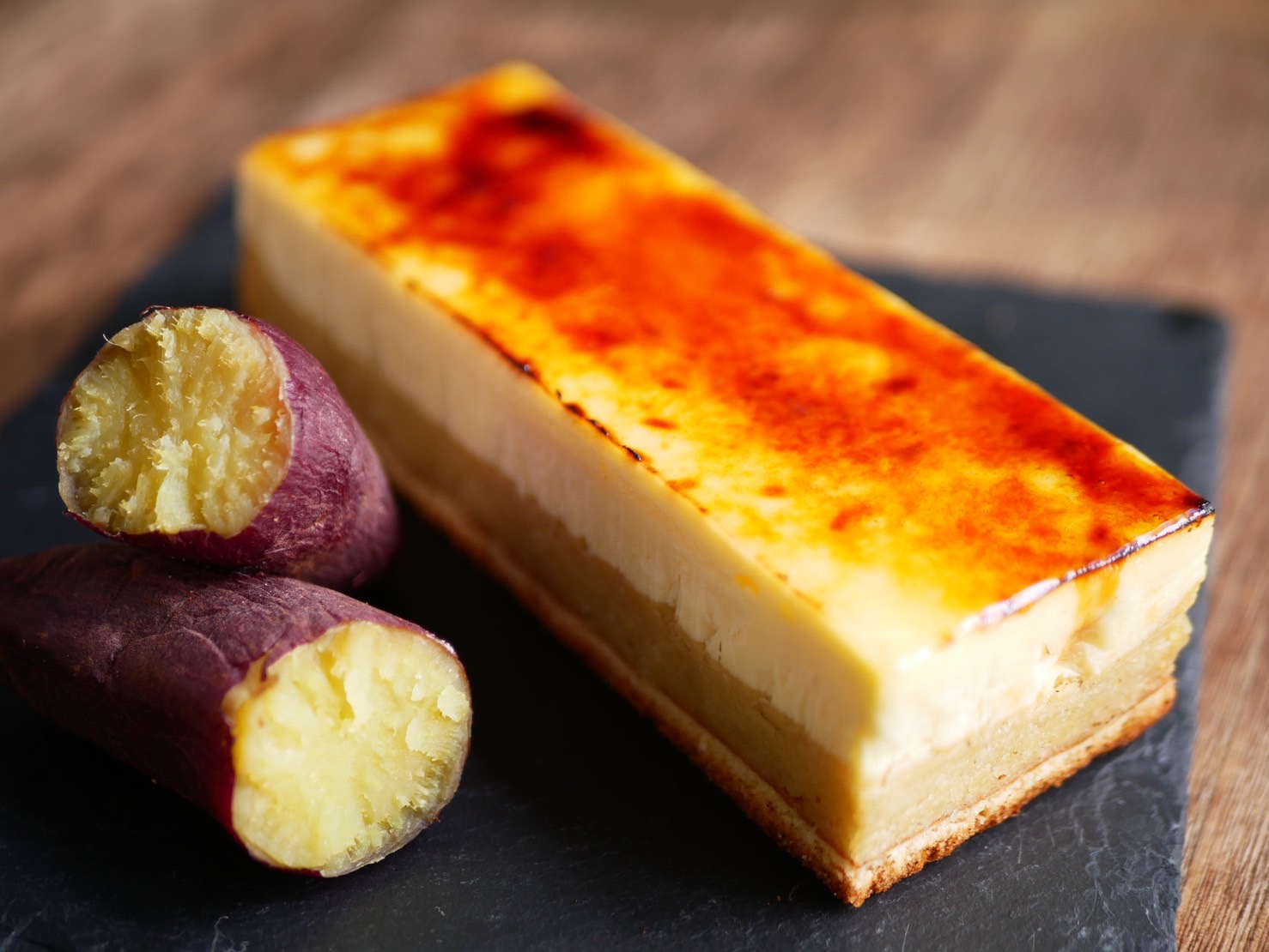 ▲「地瓜羊羹烤布蕾 起司蛋糕風味」號稱進化系羊羹,外型新潮又美味。(圖片來源:Ⓒ大三萬年堂HANARE)