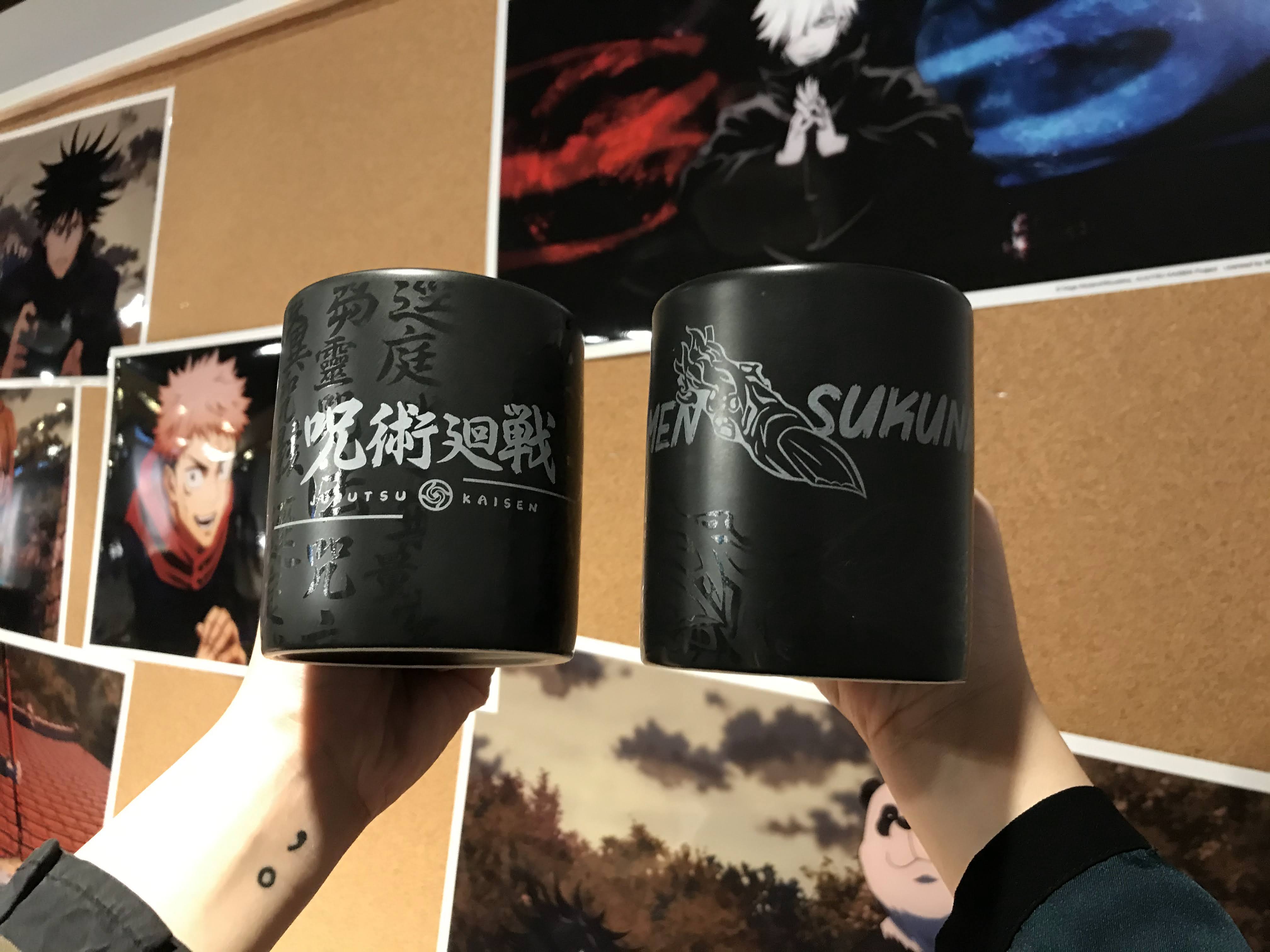 除了品嚐《咒術迴戰》期間限定的主題餐飲以外,當然少不了帶走一些相關周邊,這次還特別推出獨家設計的系列周邊,像是帽子、潮T、毛巾、霧黑馬克杯、不鏽鋼杯、卡套、胸章、滑鼠墊、雷雕木盤、方鏡等超多新品,皆是以《咒術迴戰》LOGO、宿儺刻印以及各種主角為設計發想,11月17日起等著粉粉們來現場選購。