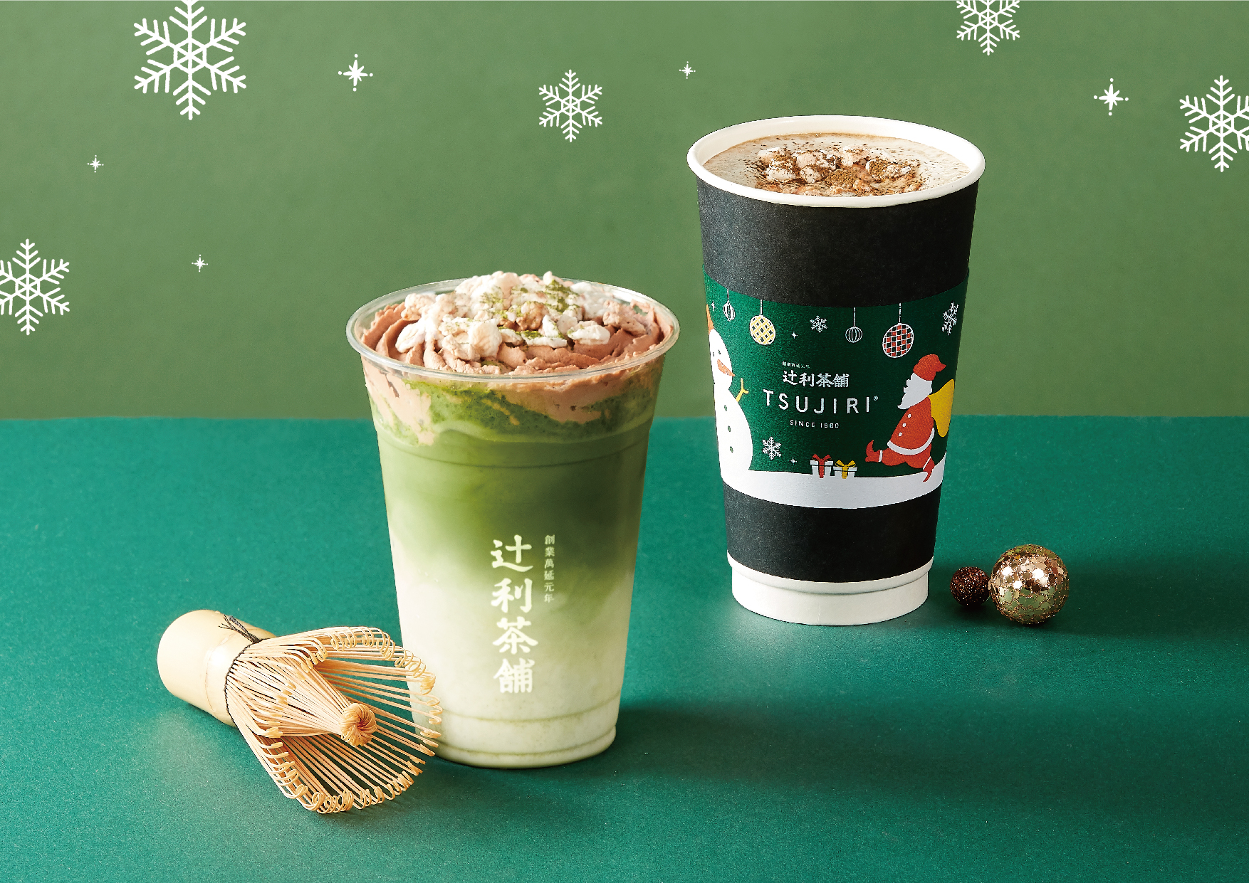 除此之外,還有暖心飲品在辻利茶舗同步開賣,分別是「抹茶黑巧奶霜拿鐵」與「焙茶黑巧奶霜拿鐵」,2款飲品冷熱皆有販售,現刷傳統抹茶與焙茶飄散濃郁香氣搭配新鮮牛乳的招牌拿鐵,巧妙結合大人系口味的黑巧奶霜,並撒上預烤過後的迷你棉花糖,三者絕佳比例散發迷人魅力!而且即日起至12/25前,只要購買任一限定飲品或熱飲,皆會贈送應景的聖誕節限定杯套,和風紋路的聖誕樹與聖誕球交錯聖誕老人、麋鹿等節慶元素的獨特設計風格,喜歡收集杯套的朋友們手腳要快,送完為止喔!