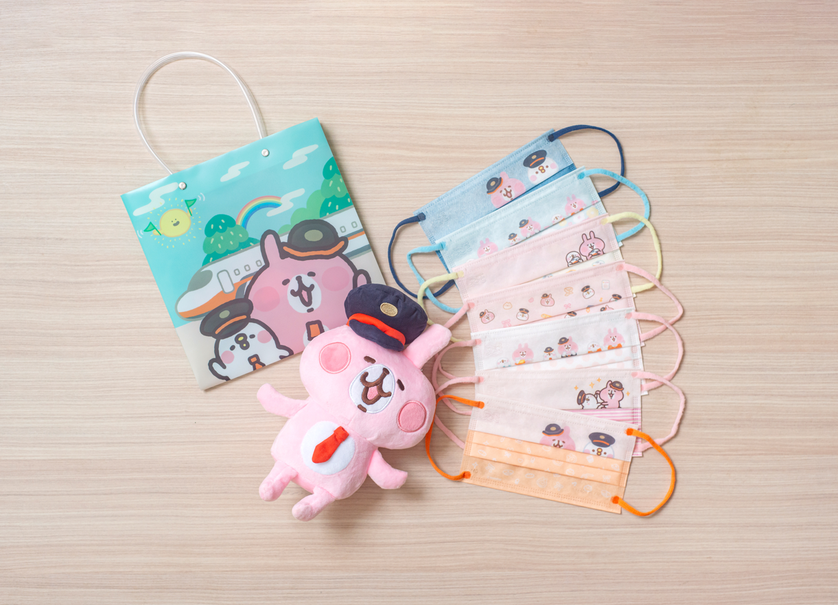 12/9起開賣!由P助與粉紅兔兔守護您吧!口罩3件組內含「台灣高鐵x卡娜赫拉的小動物」聯名口罩、「粉紅兔兔列車長娃娃」與獨家「限定款提袋」。萬眾期待粉絲敲碗加量推出的聯名口罩每盒共七款造型,讓你天天都有超萌口罩陪伴!