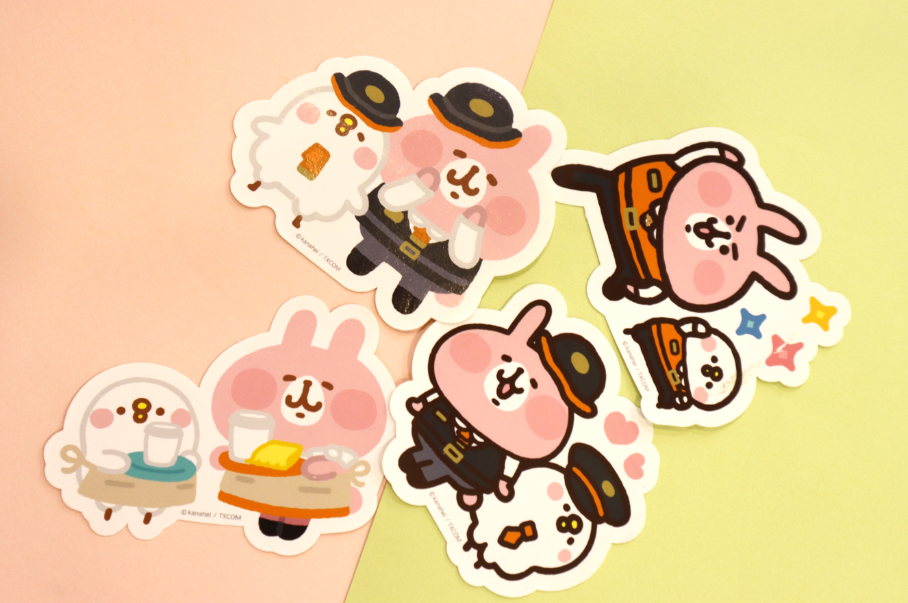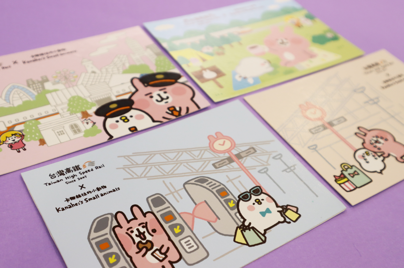 《台灣高鐵x卡娜赫拉的小動物 禮物列車》期間限定店活動期間,凡單筆消費滿499元、並按讚官方粉絲團與打卡,就送限量1千張的「高鐵聯名行李貼」,每週都有不同P助與粉紅兔兔化身高鐵列車長、服勤員或站務員的專業可愛模樣,粉絲怎能不手刀衝?