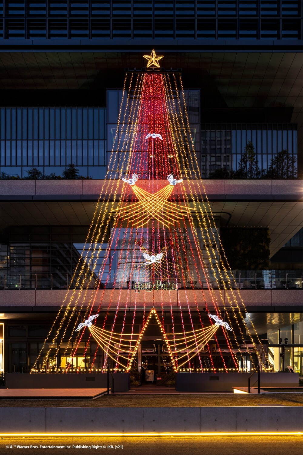 此外,以哈利波特中貓頭鷹郵差送信的場景也值得一看!高約30公尺的巨大聖誕樹造型燈飾「Tree of Owl Postーふくろう便の樹ー」,還原貓頭鷹送信的景象,只是這次不是送信,而是改送聖誕禮物!