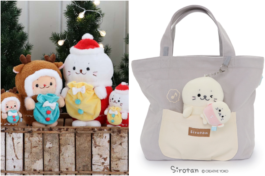 ▲Sirotan耶誕風絨毛玩偶(左)、Sirotan托特包(右)。