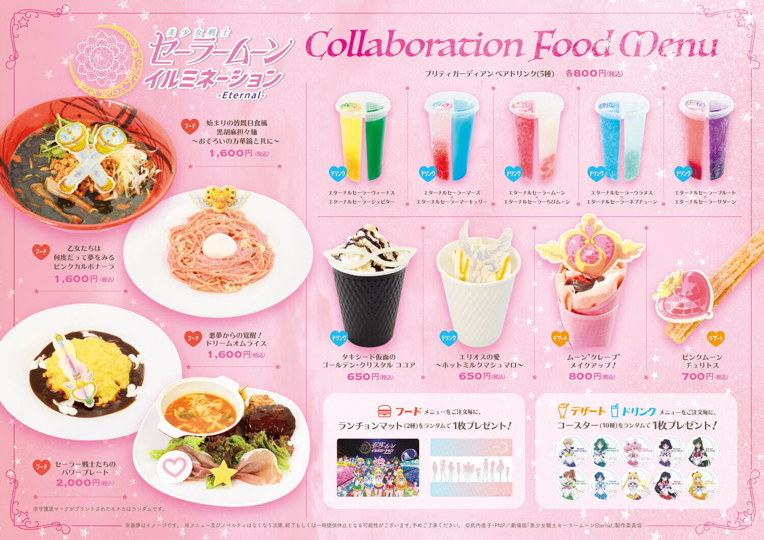 燈飾期間,園內也特別推出以《劇場版美少女戰士Eternal》為概念的各式美食及多款周邊小物。欣賞完夢幻燈飾後,不妨到餐廳、販賣部走走逛逛,休憩一下。
