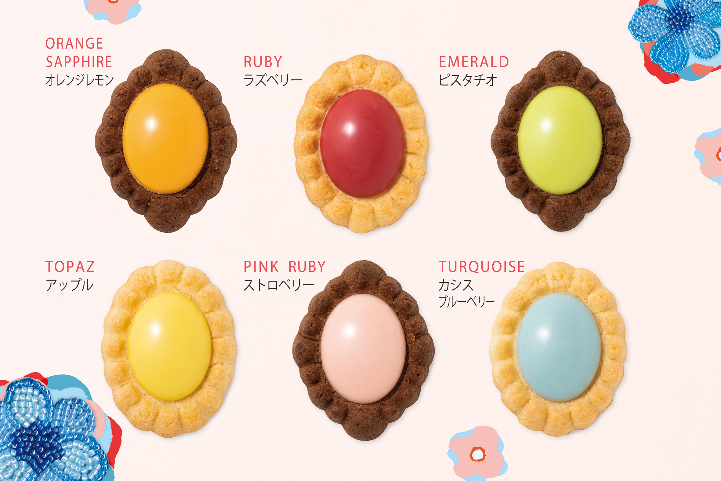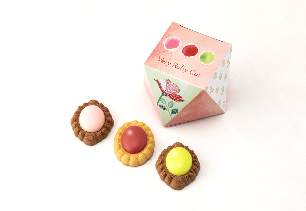Very Ruby Cut的招牌商品就是和品牌同名的Very Ruby Cut系列餅乾!造型非常吸睛。這一系列共有6種口味,分別是象徵紅寶石的覆盆莓、粉紅水晶的草莓、類似翡翠的開心果、和黃玉很相似的蘋果、令人聯想到綠松石的黑醋栗藍莓和橘水晶般的橙子檸檬。如果想要送人的話,也可以根據對方的誕生石來選擇相對的口味哦!