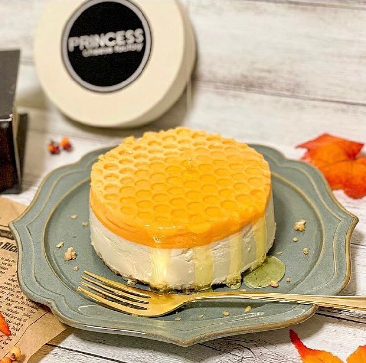 Princess Cheese Factory原先是網路通販的起司蛋糕專門店,使用的開店系統也很陽春,卻在日本推特和IG掀起了一股話題。引起討論的正是蜂巢造型的生起司蛋糕。這款生起司蛋糕在製作過程就加入了蜂蜜,使口感更佳甘甜,同時也加入了100%柑橘果汁,柑橘的酸甜和起司蛋糕融合的恰到好處。另外,店家也有提供蜂蜜,如果是螞蟻一族,也可以再額外淋上蜂蜜。