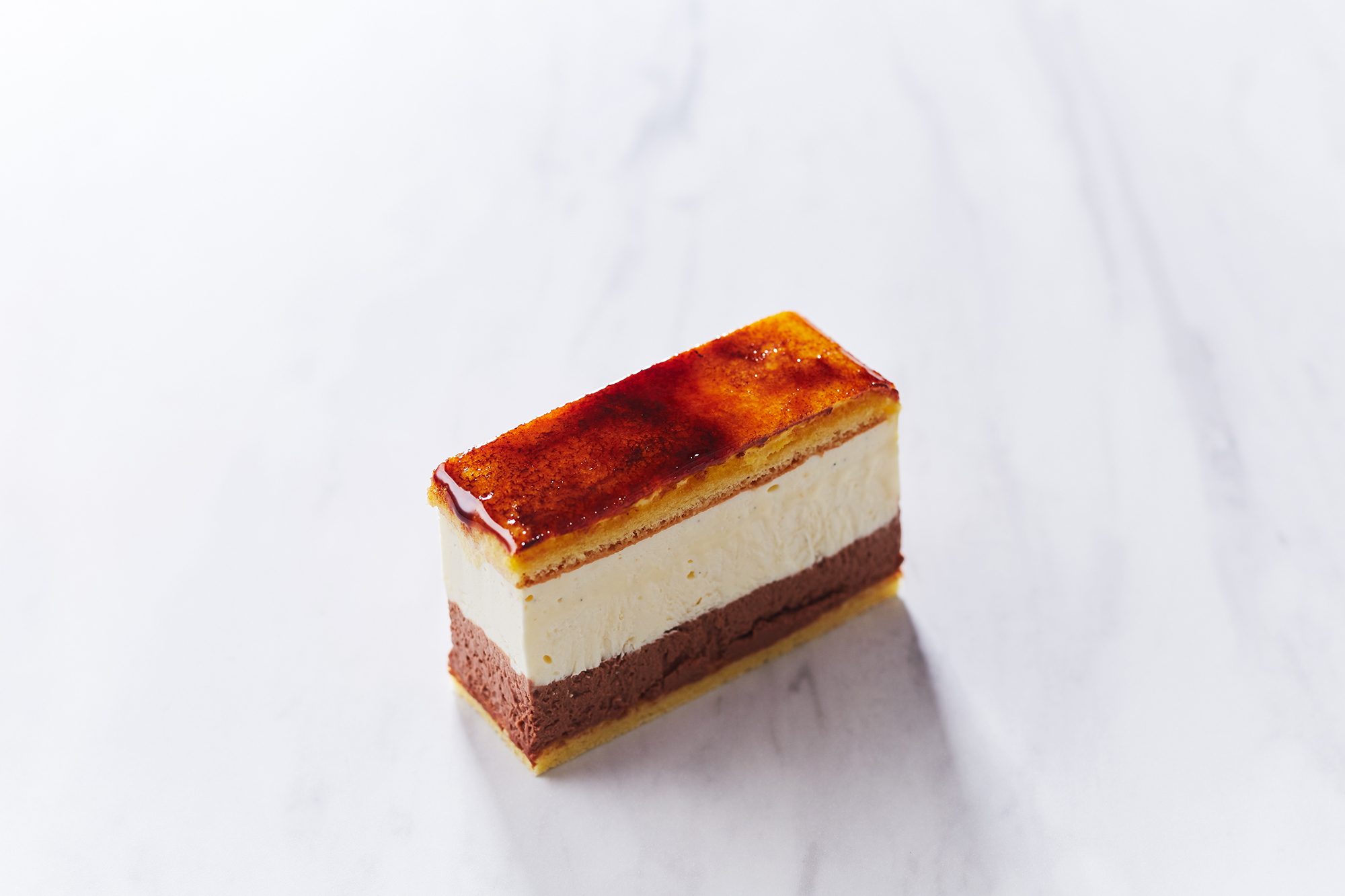 表面為焦糖化的香草生奶泡,底下再搭上巧克力奶油。價格648日幣,含稅。