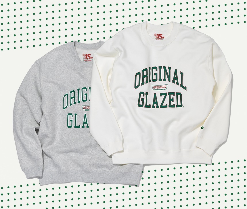 以店家獨家配方Original Glazed為圖案的大學T,直接在胸前印上了店家的精髓,別具紀念價值,大學T共有白、灰兩色,內部刷毛,保暖實穿。