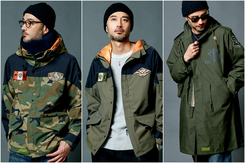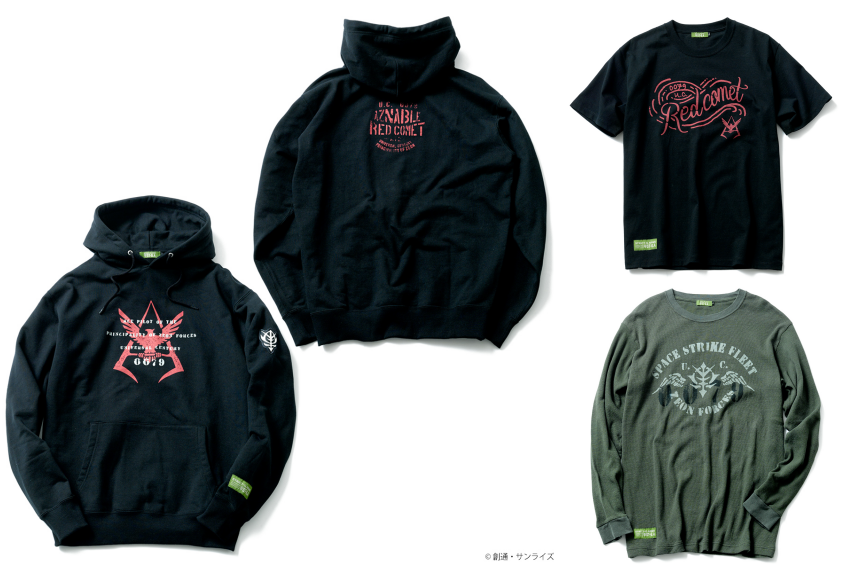 同樣在冬季提供保暖又能展現自我風格的禦寒外套選擇,還有ARMS系列也提供法國軍用規格夾克,以及美國軍用規格夾克。此外,印有復古質感設計的ARMS系列提供短袖T恤紅色彗星款及姆賽級輕巡洋艦主題款,其舒適的天竺質地更提供柔順感觸及綿質蓬鬆感。長袖服飾的選擇,則有以夏亞部隊為主題的A12與吉翁宇宙攻擊軍兩款;帽T則是以使用20/10 Pacific刷毛,具有適當保溫性和高吸水性且不易悶熱的紅色彗星款與吉翁勢力款。