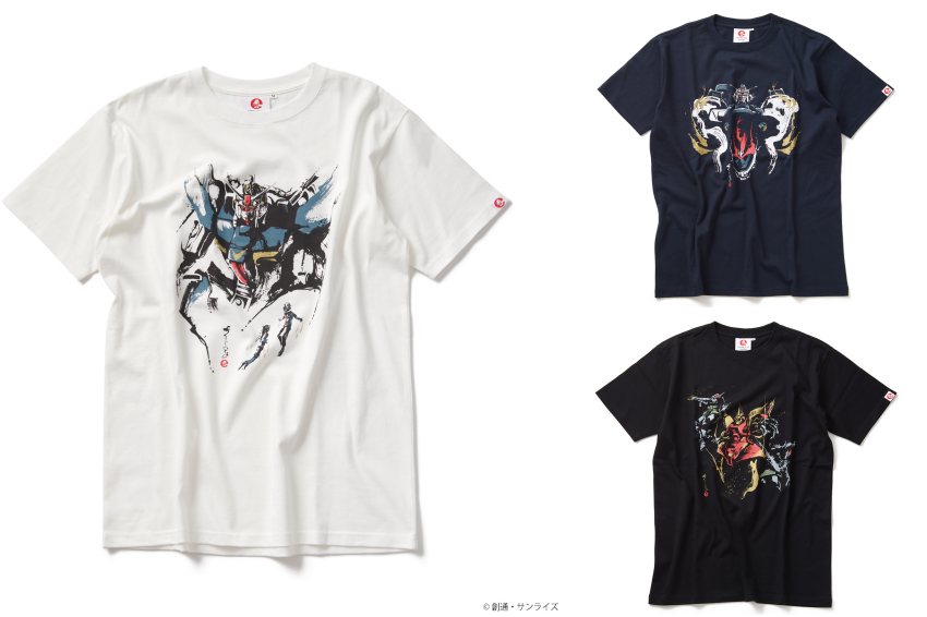 ▲JAPAN系列「機動戰士鋼彈 0083」T恤水墨風試作1號機(左)、水墨風試作2號機(右上)、水墨風傑爾古格(右下)。