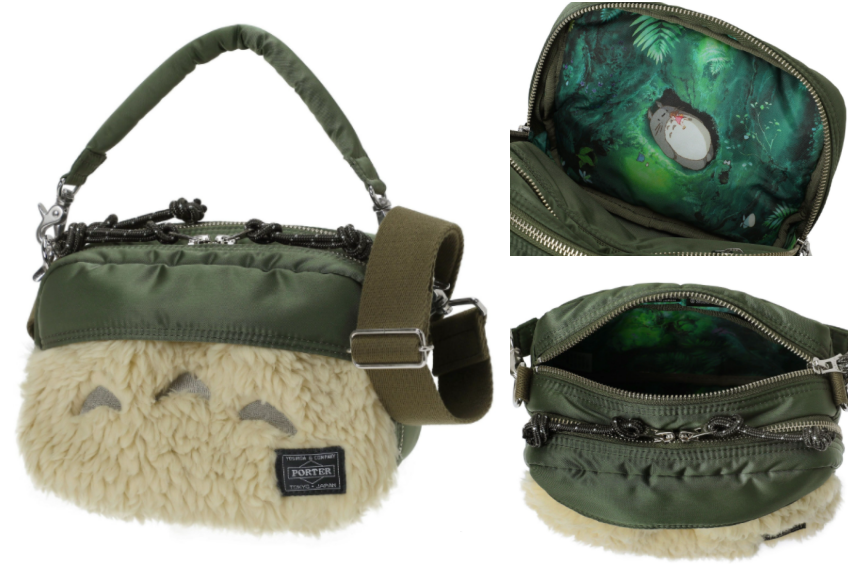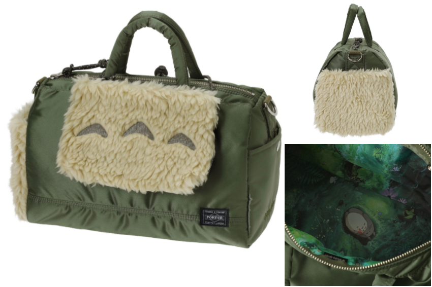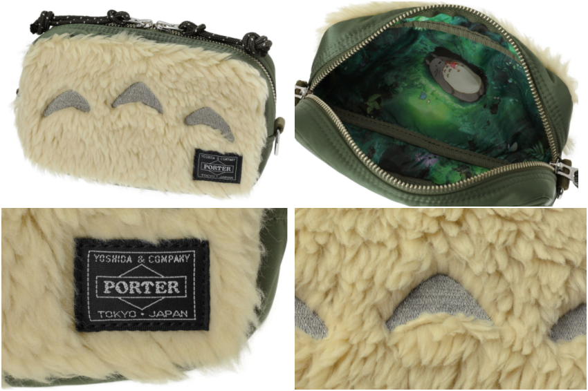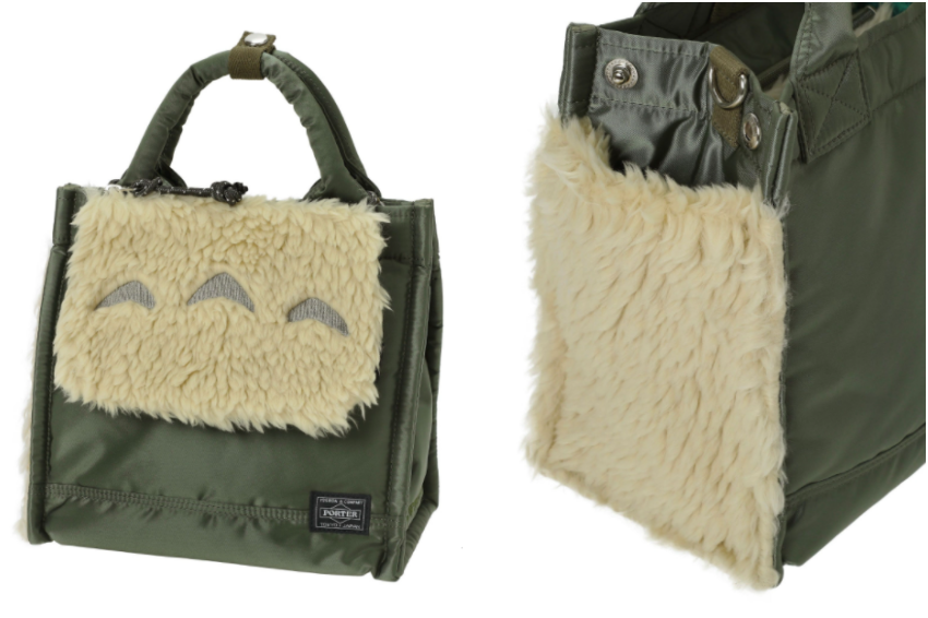 「龍貓X PORTER」這個系列以「森林」的橄欖色為設計基礎,並在內袋當中印有生動又茂密的龍貓森林,以生動地表達它,仔細往包包底部一看,還會看到睡在龍貓肚子上的小梅,有夠可愛的!除此之外,包包上使用的毛皮為壓克力所製成的,並非使用動物毛料,且摸起來柔軟又溫暖,同時兼顧愛護生物與設計感。