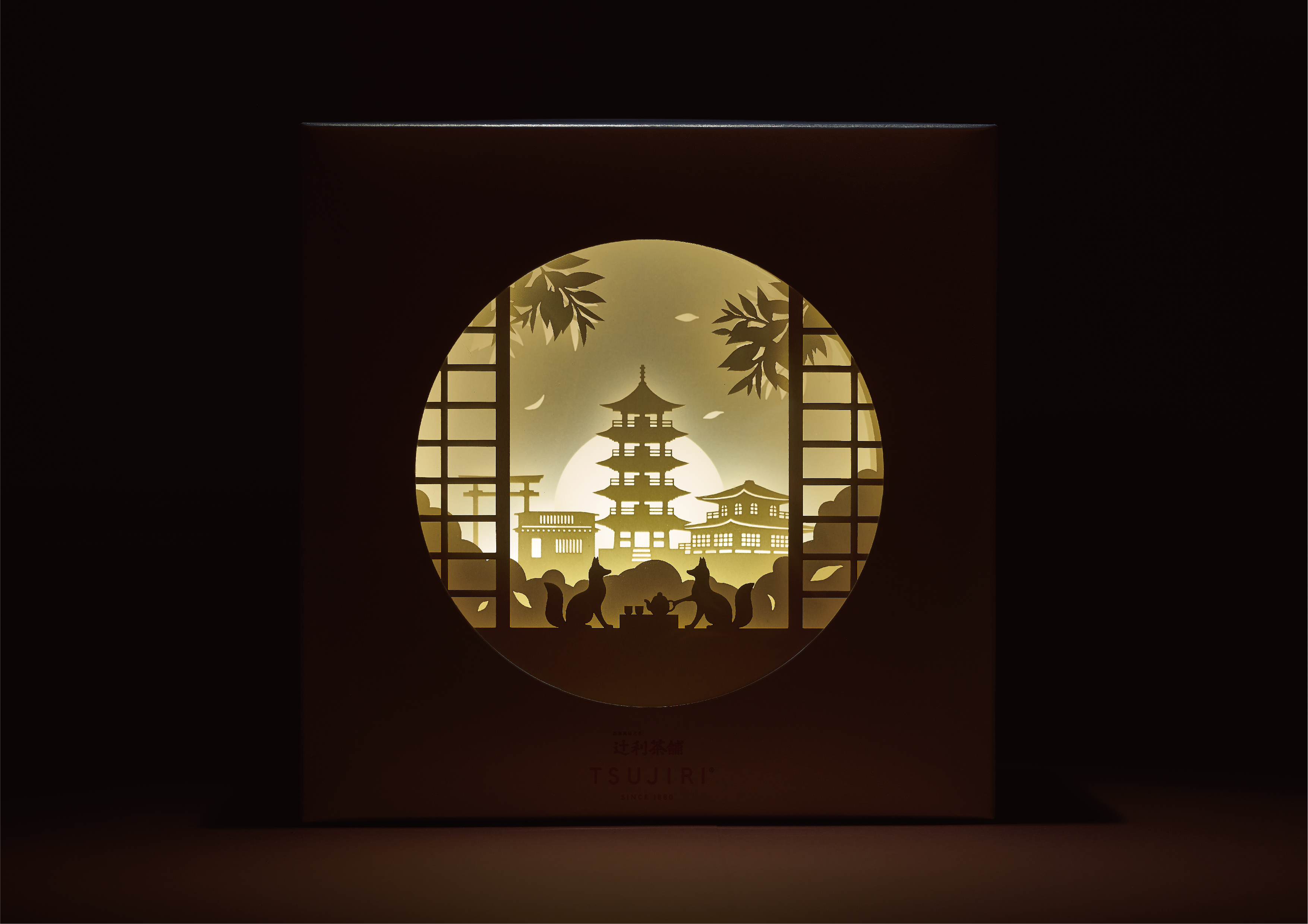 兩年前在台灣一推出就熱銷破千盒的「茶遊京都典藏禮盒」,即將從2022年起進行復刻改版,推出「辻利京茶花禮盒」,造型是以台灣紙雕藝術結合京都景物,盒蓋以夕陽下京都美景為概念,迎著徐徐涼風樹影婆娑,在落日餘暉的茶席與象徵豐收與智慧的狐狸差使,一同享受美好時光。除此之外,在日本文化中,紅色代表著祝福的含意,所以盒底與提袋還特別以深紅色山茶花為概念色,搭配日式七寶和風圖紋,且茶食食用完畢後,禮盒還能華麗變身成小夜燈,兼具環保意識,為生活、職場等日常領域妝點儀式感氛圍!