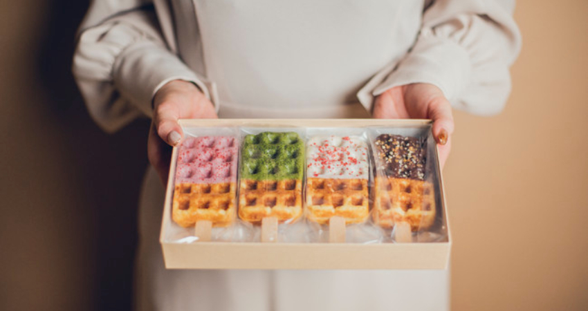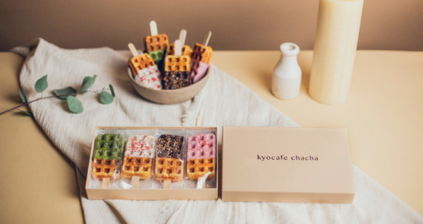 京Waffle不只可以當場享用,由於可以保存,也很適合作為京都的特色伴手禮。外帶有分2入組和4入組,箱子上還有緞帶,簡直是網美必備的拍照聖品。由於造型類似冰棒,拿起來非常方便,也很適合在遠端工作時拿來當作點心。抹茶口味則使用了京都老舖抹茶店「山政小山園」的抹茶粉,保證能夠品嘗到原汁原味的抹茶韻味。