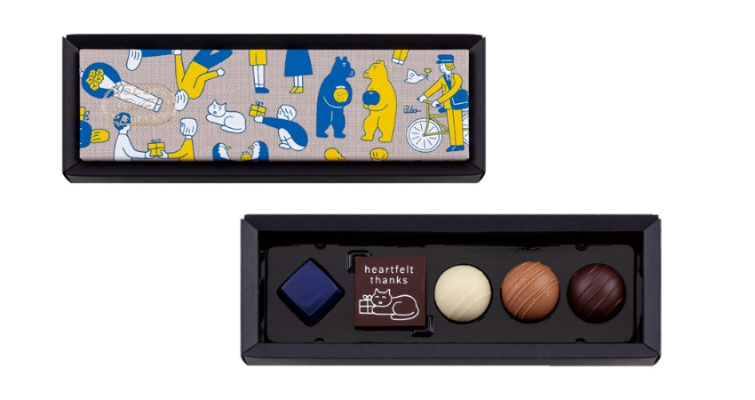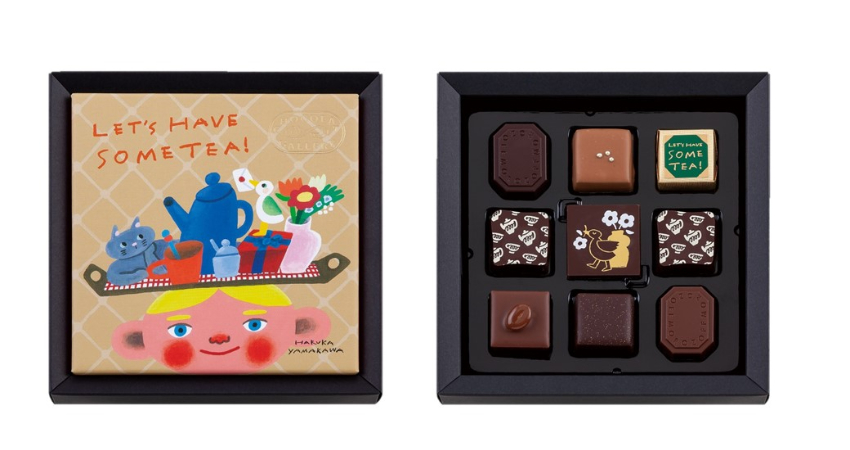 由善於在流行元素中融入復古風格的山川はるか繪製,以洋溢著感恩之情的下午茶時光為主題。若是能在喝著重要的人特別為自己沖泡的咖啡、下午茶時,再收到這款巧克力是多麼令人雀躍的一件事!