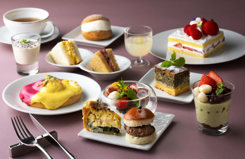 本次主題「Penthouse Afternoon Tea」由季節性的開胃飲料開菜。甜品設計由主廚瀧澤一茂和總料理長石原雅宏負責。在日本1月新年假期也有推出限定組,以紅色為主色,淋了甜菜醬的班尼迪克蛋尤其吸睛。飲品的部分則使用了全11種高級紅茶品牌「ronnefeldt」,可自由挑選。全品項包含甜品6種。非限定組的甜品則有5種,分別是:椰子牛奶凍(blanc-manger)、梨子巧克力蛋糕、泡芙、白玉抹茶慕斯和風聖代和柚子口味的水厥餅。鹹食則有8種,分別是沙拉、燻鮭魚捲、鄉村風冷盤、總匯三明治、番茄生火腿佐莫札瑞拉起司、松露法式鹹派、和牛土佐串和和牛肉醬焗烤。
