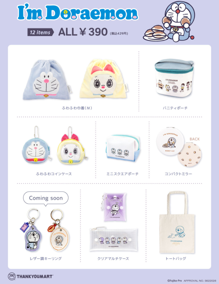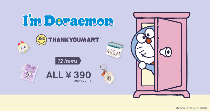 日本連鎖商店「THANK YOU MART」主打各式各樣的潮流時尚雜貨、暖心室內裝飾等,不定期還會推出與人氣角色合作的聯名商品,目前在日本已有104家店鋪,且全品項通通只要390日幣(未稅)!價格經濟實惠,品項豐富多元,深受許多家庭主婦、小資族喜愛。本次THANK YOU MART攜手了知名的卡通設計公司「三麗鷗」設計的「I'm Doraemon」,I'm Doraemon的畫風採手繪風,並融合和風元素,是針對成熟粉絲推出的一系列設計。這次以超人氣兩大主角「哆啦A夢」與「哆啦美」為元素,融入春季感的淡色系色調,打造一系列柔和風格的生活雜貨,讓成熟大人也能輕鬆駕馭,可愛又不過於稚氣。