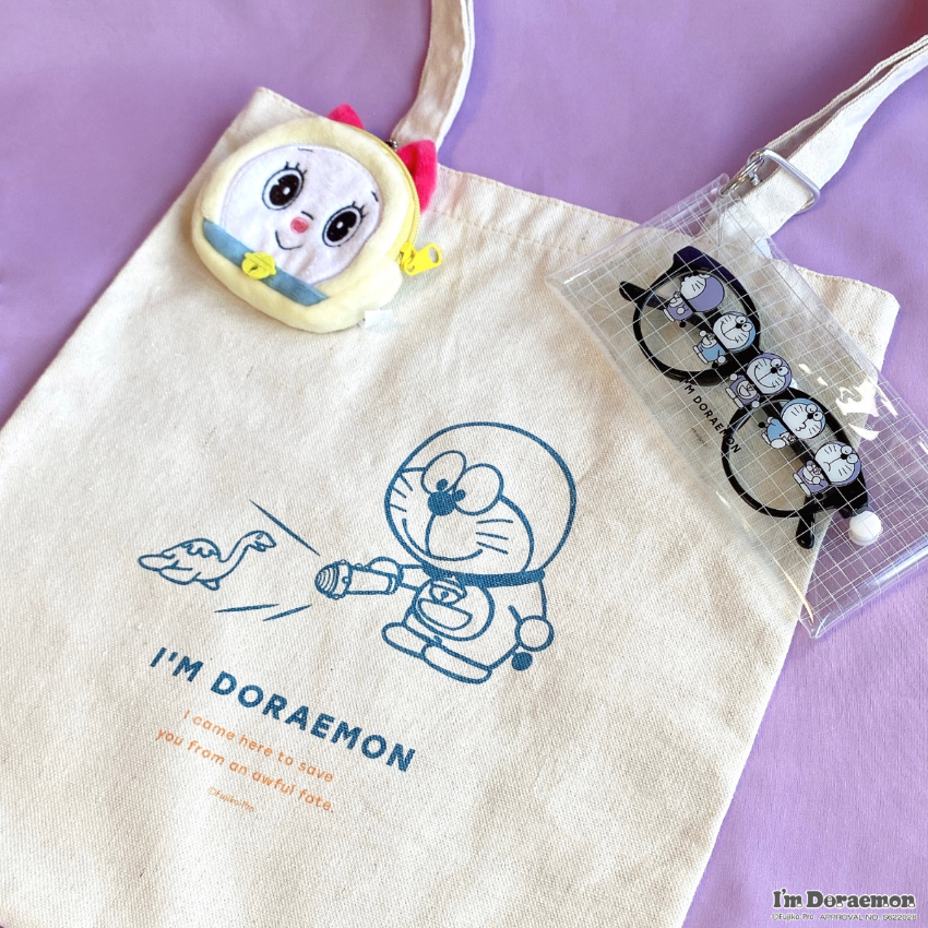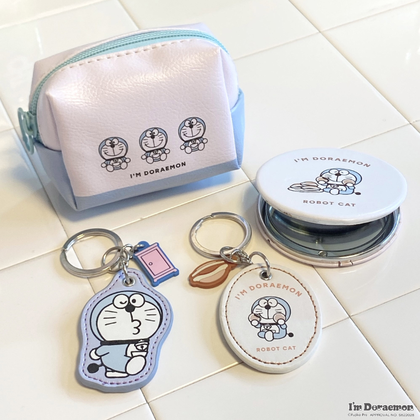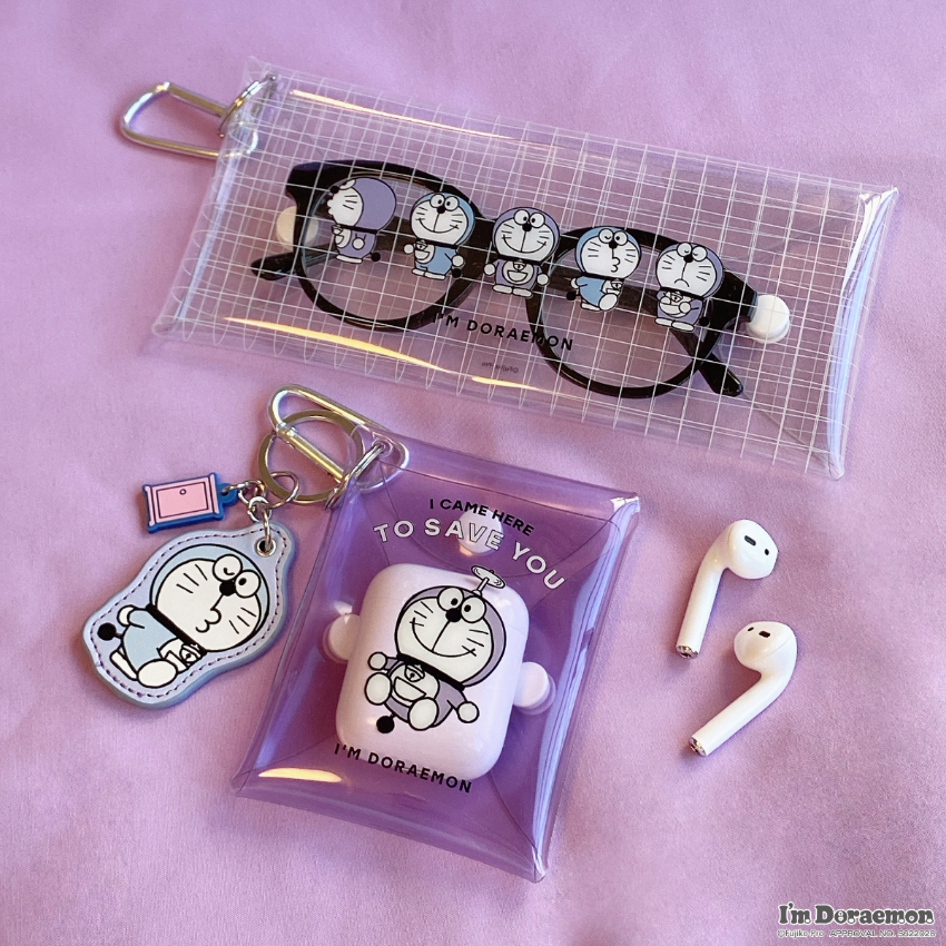 共有兩種不同尺寸,分別印上了不同造型的俏皮哆啦A夢,可用於眼鏡、耳機等物件的收納,並附有掛鉤,可掛於背包上。