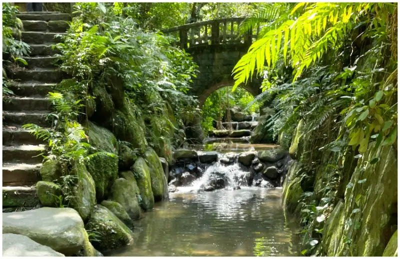若厭倦了城市車水馬龍的烏煙瘴氣,想走進自然好好森呼吸一下,虎山溪步道絕對是遠離塵世的捷徑,而且只需5分鐘,就能抵達這條步道中最美、最熱門的夢幻景點。在翠綠環繞的山谷間,古意盎然的小橋凌空獨立,清澈流淌的河水與枝葉間灑落的耀眼日光交織一片祥和,讓人剎那間以為誤闖了仙境!