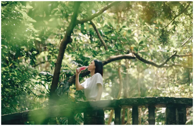 加上潺潺水聲、鳥叫蟲鳴及隨風傳送的林葉簌簌,大自然的動人交響就這樣神展開,用沁入心脾的清新洗滌每一個感動的靈魂,這時搭配真實玫瑰花煮茶的美研社玫瑰花果茶,五感都獲得幸福療癒,讓人由內而外,自然散放美麗光彩。