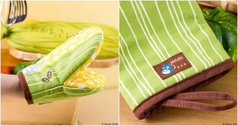 近幾年吉卜力週邊商店「橡子共和國」都會依照慣例在母親節前,推出外型像是被玉米葉包住的禮物組合,靈感來自於《龍貓》當中小梅抱著的那顆玉米,希望能到醫院做為探望媽媽的禮物。而今年推出的禮物組當中,首推玉米圖案的廚房手套,除了可以保護媽咪做菜時不被燙傷,仔細一瞧還會發現手套上藏有灰塵精靈和龍貓的花樣,完全兼顧了可愛和實用度。![]()
