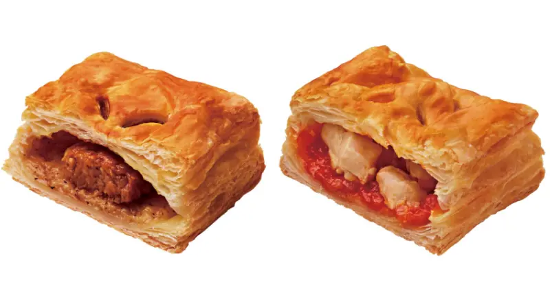 至於兩款鹹派則是「照燒牛肉派」與「辣醬雞肉派」,其中「濃厚照燒牛肉派」口感特別豐富,是將照燒醬和美乃滋醬混合後撒入胡椒粉,再搭配上醃製牛肉所製作而成;「濃厚辣醬雞肉派」雖然只有簡單放入雞肉與辣椒醬,但對於喜歡辣味或不喜歡高熱量調味醬的人來說,就是最好的選擇。