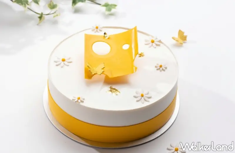 當然還有「雪藏百花蜜起司蛋糕」,回想年少時媽媽身穿的雛菊洋裝,主廚將其幻化為甜點元素,香烤北海道雪印乳酪內餡、荔枝風味香緹,搭佐百花蜂蜜、香草蛋糕及四葉十勝鮮奶油,以簡約法式裝飾技藝,襯托起司與蜜香融揉的日式雅致。以金箔綴飾,更添輕奢風采。