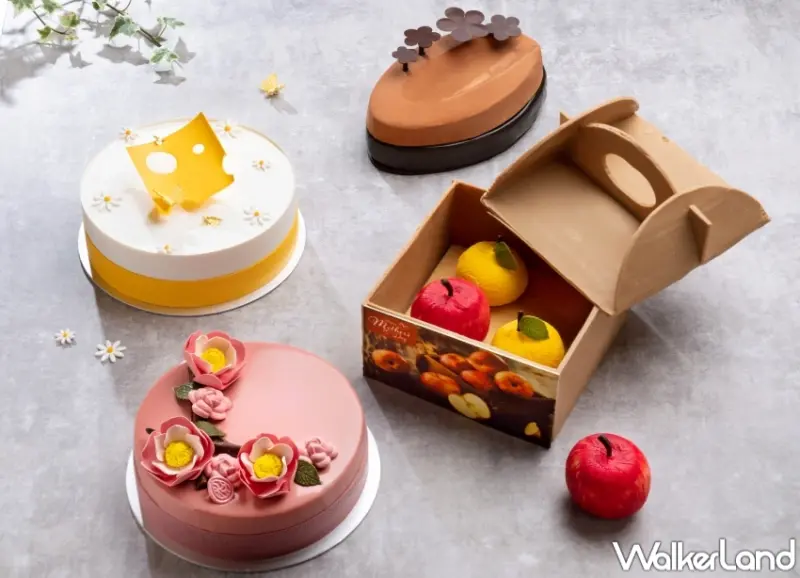 首波主打「Baguette禮品烘焙坊」推出的母親節擬真蛋糕「君悅高級水果禮盒」,主廚耗費72小時製作。造型巧思融合「復古台味」、「看得到都能吃」特色,點心房主廚陳建佑靈感汲自台灣送禮文化,以法式甜點手法及精湛巧克力工藝,打造藝術品般的獨創美味,以41%法國黃金巧克力重現瓦楞紙質感,並將日本焙茶費南雪搭配逼真的蘋果、柑橘慕斯蛋糕,內餡分別包入甜橙鳳梨杏桃果醬與焦糖太妃糖蘋果醬,獻給媽媽驚喜連連的祝福美意。