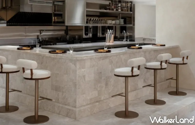 而在70坪的空間內融合了一個以台灣民初時期遇見 60 年代法國蔚藍海岸為靈感的 bar,再隱藏著一間以當季蔬食為主軸的 chef ’s table 餐廳。入口的簡約則是奉獻給藝術家創作,將用餐推向抽象的邊緣,讓烹飪與創作變成一種簡化的語言。