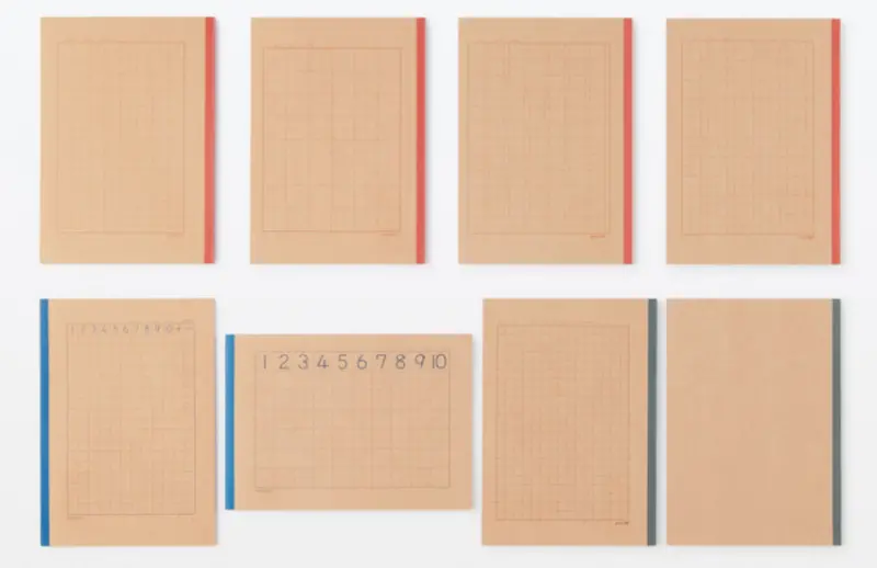 在設計上盡量減少科目名稱及商品名稱的印刷面積,以減少不必要的空間浪費,並且為了讓使用者一眼就能看出筆記本的格式,特別將筆記本的格式類型印於封面,相當便利。尺寸皆為B5大小,類型多樣,適用於寫作、算數、習字等,用途廣泛。![]()